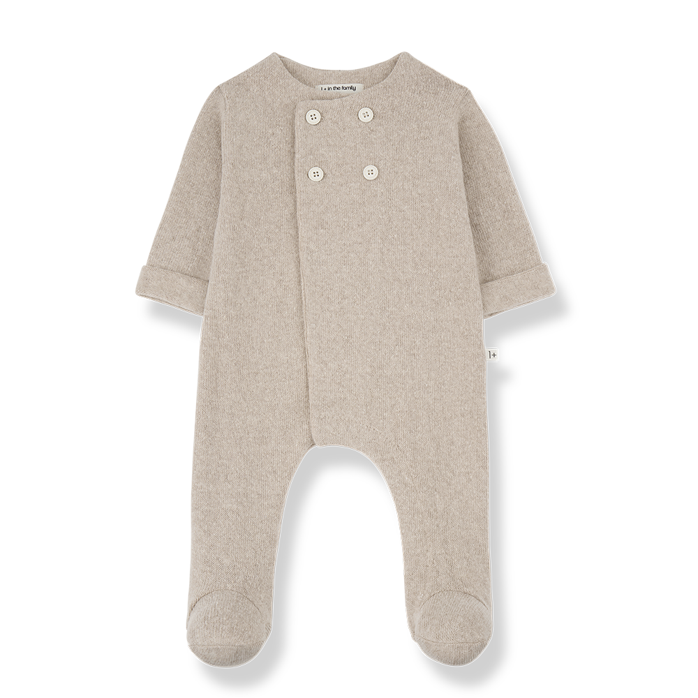 Hele zachte jumpsuit Baptiste in de kleur Beige van het mooie merk 1+ in the Family. Het pakje is gemaakt van zachte katoen fleece waardoor het heerlijk zit. De jumpsuit is voorzien van voetjes waardoor je geen sokjes nodig hebt. De mooie sluiting aan de voorkant maakt dit pakje extra bijzonder. Tussen de beentjes zitten drukkertjes waardoor je jouw kindje makkelijk kunt verschonen.