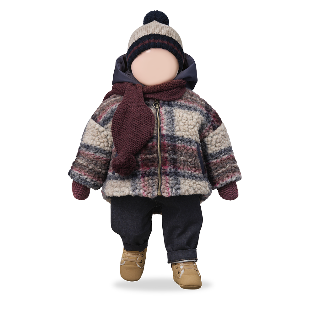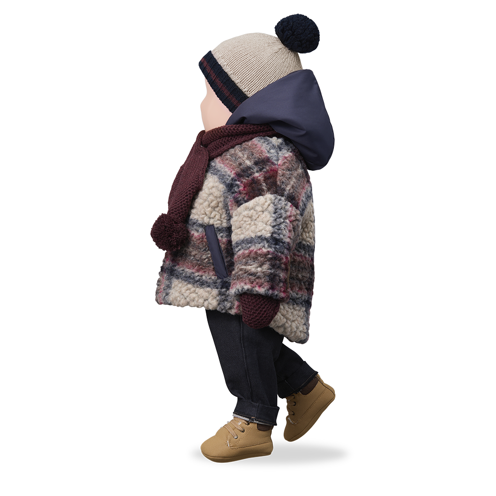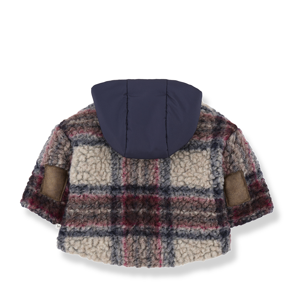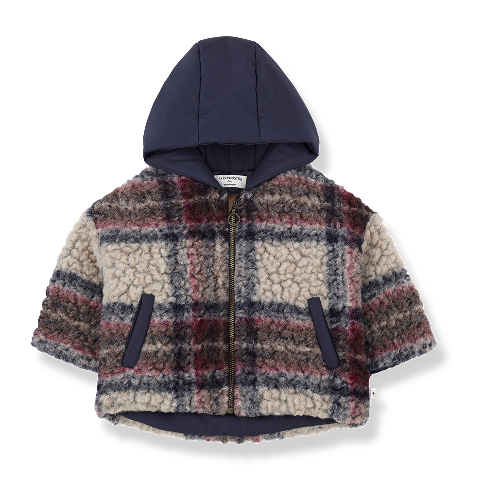 Prachtige wollen hooded jacket in de kleur dark blue van het mooie merk 1+ in the Family. De jas is gemaakt van een dikke wol boucle en voorzien van een voering. Door de voering krijg je hem makkelijk aan bij jouw kleintje. De jas sluit aan de voorkant met een rits. De mooie grote ruit maakt hem extra bijzonder.
