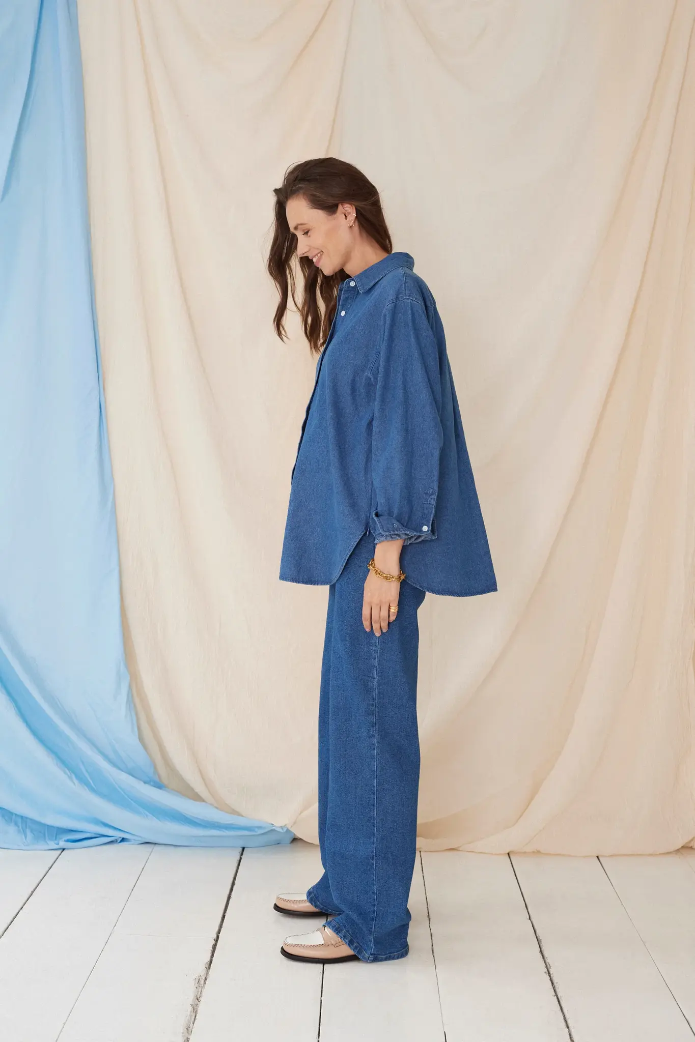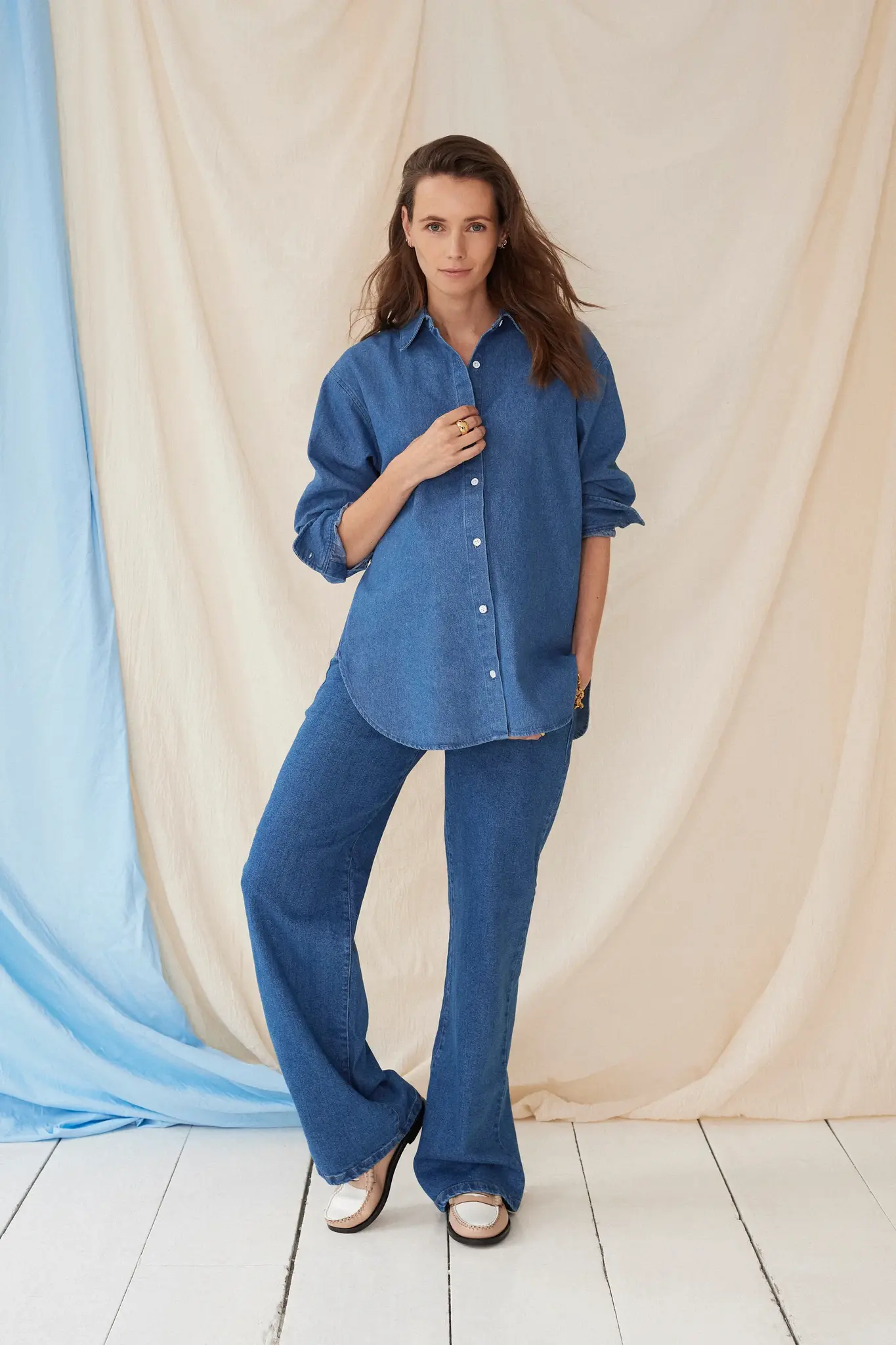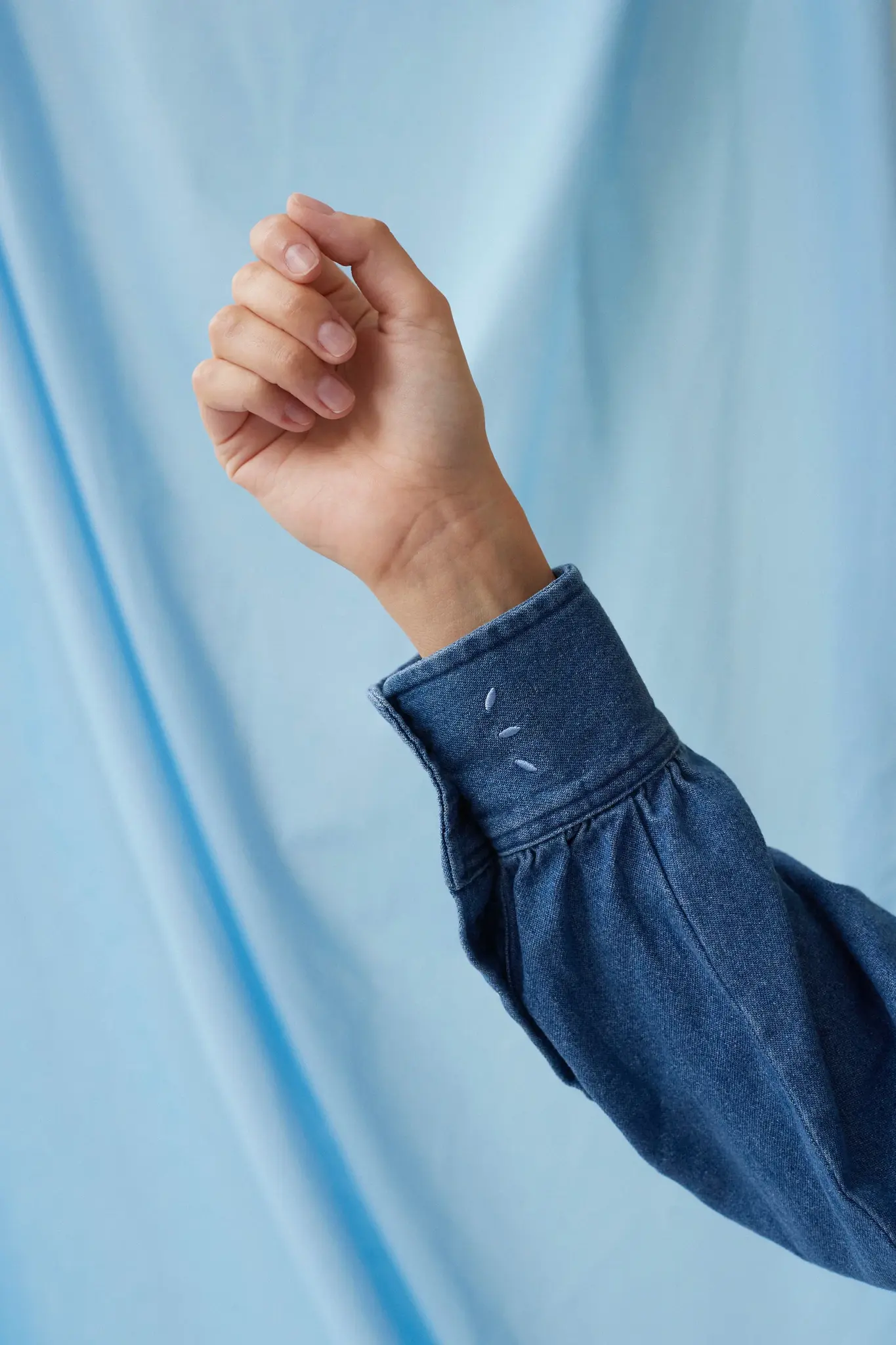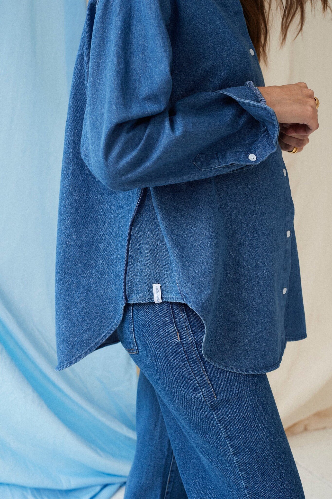 Een prachtig positie denim shirt van het mooie Nederlandse merk Atelier Melon. De bloes is gemaakt van 100% hoogwaardige katoen denim. Hierdoor blijft de kwaliteit mooi, ook naar meerder wasbeurten. Deze perfecte basic is zo ontworpen dat je erin wilt wonen. De bloes heeft een beetje een oversized fit. In de zijnaad zitten blinde ritsen die je steeds verder kunt openen naarmate je verder komt in je zwangerschap. Na de bevalling kun je de risten weer sluiten en heb je weer een prachtig shirt met een normale fit.