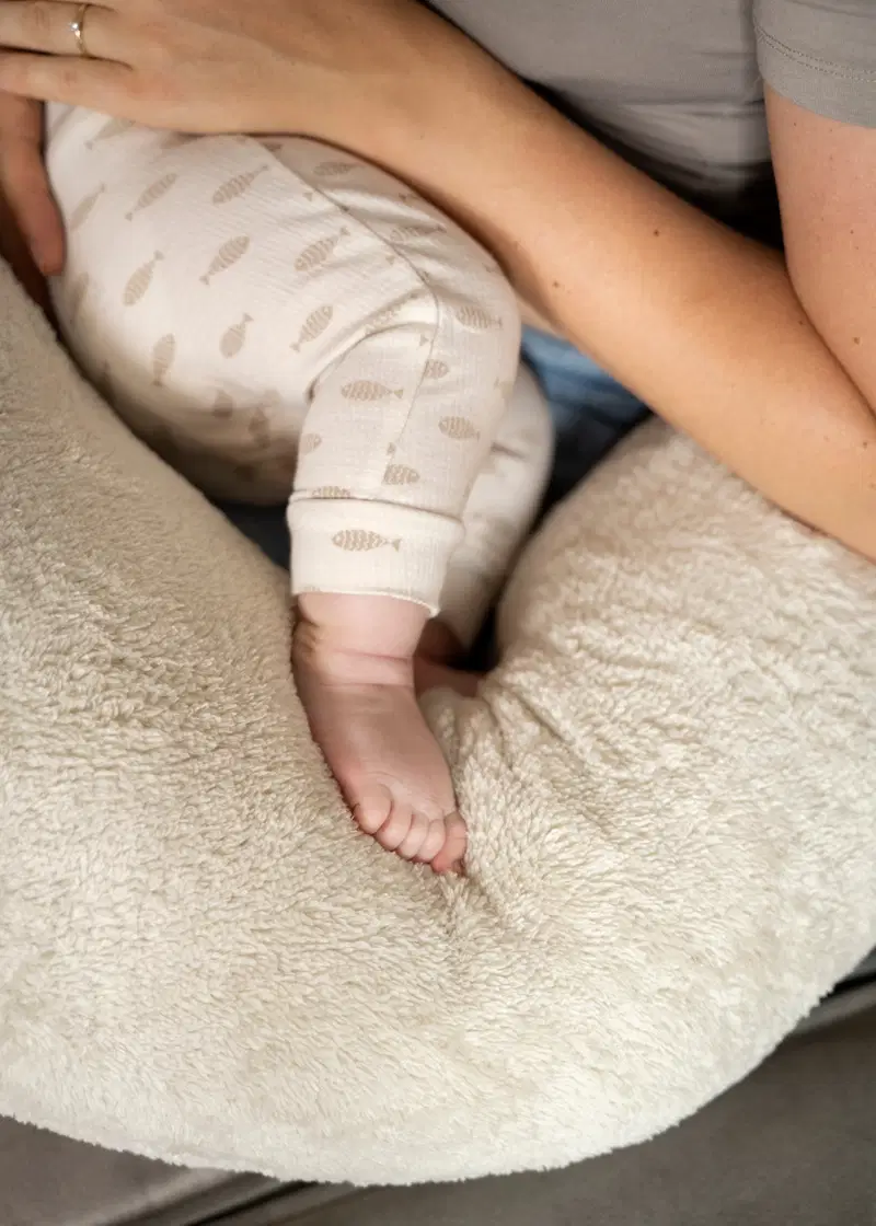 Stijlvol boxpak Fin in de kleur beige van het leuke Nederlandse merk Baby's Only. Het boxpakje is gemaakt van een mix van biologische katoen met elastan waardoor het heel comfortabel zit. Het pakje is leuk uitgewerkt een patroontje van allemaal visjes en mooie houten knoopjes. Tussen de beentjes zitten drukkertjes zodat je jouw kleintje makkelijk kunt verschonen.