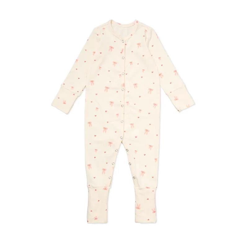 Super schattige onesie Ellinor met de print Bows van het Deense merk CamCam Copenhagen. De onesie is gemaakt van zachte biologische katoen en voorzien van een leuke print van kleine strikjes. Aan de voorkant sluit het pakje met kleine drukkertjes. Tussen de beentjes zitten ook drukkertjes waardoor je jouw kindje makkelijk kunt verschonen. Aan het uiteinde van de pijpjes zitten stukjes stof die je over de voetjes kunt klappen zodat deze ook lekker warm blijven. Een heerlijke pyjama voor jouw kleintje.