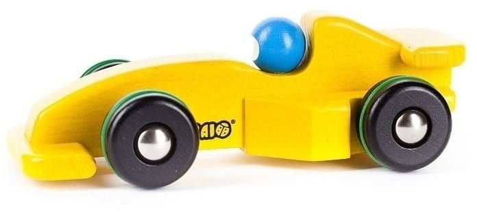 Een hele leuke grote blauwe raceauto met een bestuurder van het duurzame speelgoedmerk Bajo. De raceauto is gemaakt van een duurzame Europese houtsoort en gekleurd met natuurlijke verstoffen en oliën. Over de vorm is goed nagedacht zodat het makkelijk beet te pakken is door de kinderhandjes. Deze mooie raceauto heeft speciale wielen waardoor hij heel makkelijk hard kan rijden. De auto is zo vormgegeven dat hij tot de verbeelding van het kind spreekt. Bajo kinderspeelgoed is oersterk en mooi afgewerkt. Een heel leuk cadeau.