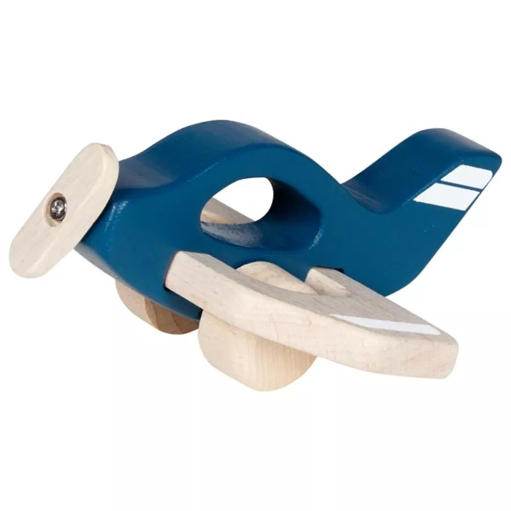 Goki houten vliegtuig azuurblauw