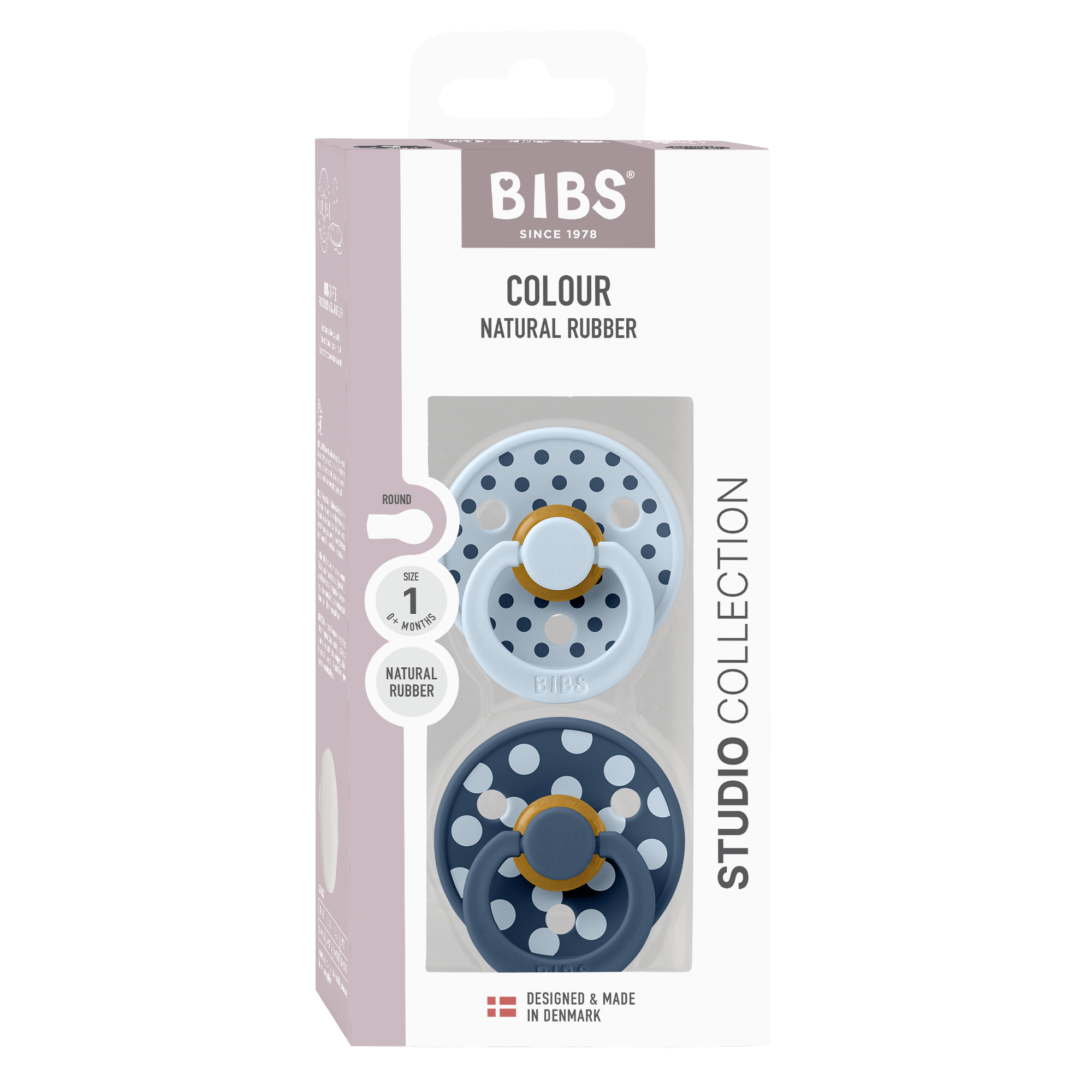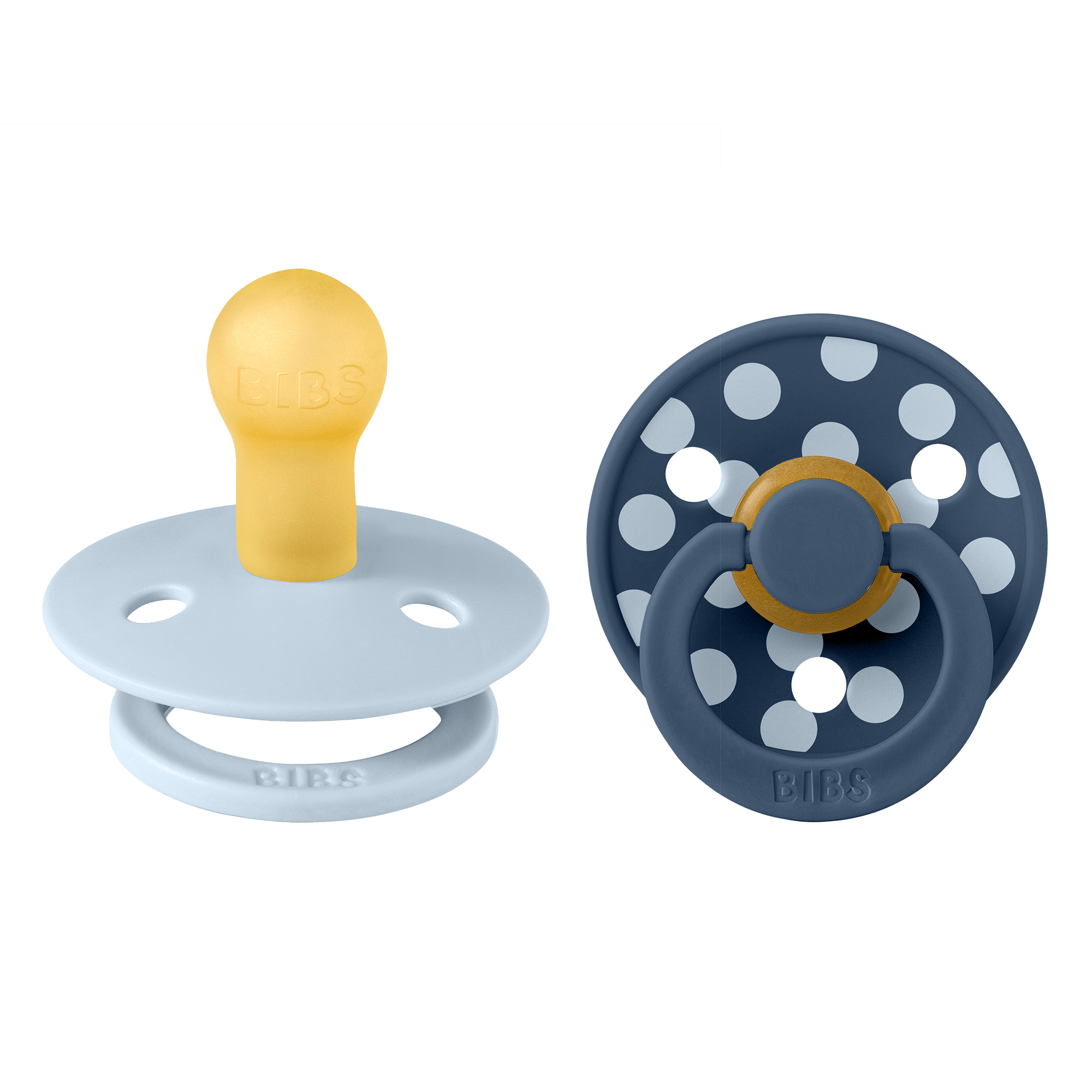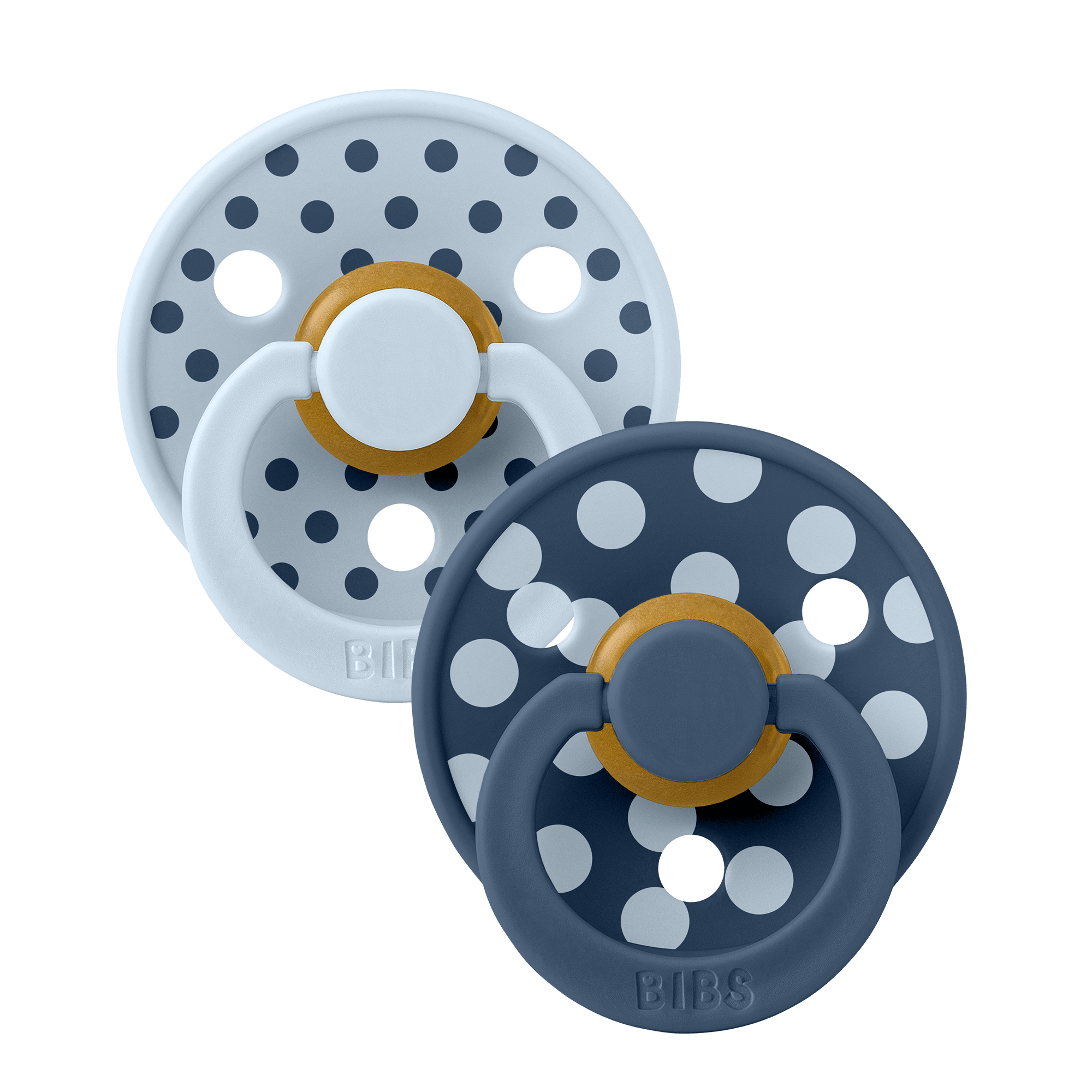 Deze mooie retro ronde fopspeen Polka baby / steel blue maat T2 van het merk Bibs. De speen is gemaakt van 100% BPA-vrij natuurlijk rubber. De ronde speen van het merk Bibs heeft dezelfde vorm als de tepel van de moeder. Het schild is rond en buigt weg van het gezichtje wat irritatie verminderd. Door de glow in the dark ring kun je hem makkelijk vinden in het donker.