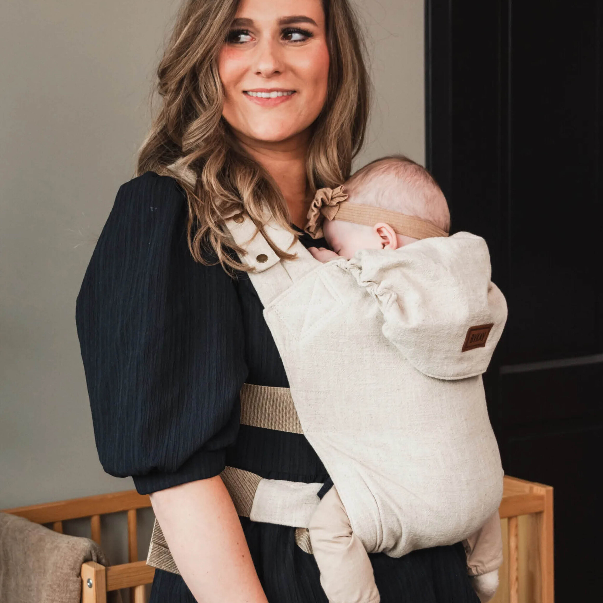 De Click Carrier Classic Pro van ByKay in de kleur linnen oat is een ergonomische, comfortabele draagzak van 100% linnen met clips, waarin je je baby op je buik, heup en rug kunt dragen. Deze babydrager is perfect voor iedereen die houdt van gemakkelijk en snel: Click & Go!