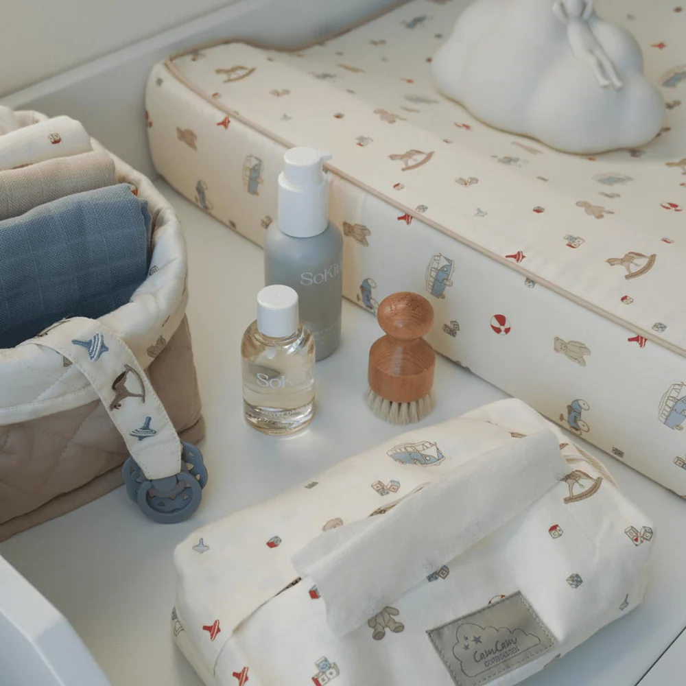 Prachtig speenkoord Vintage Toys van het mooie Deense merk Cam Cam Copenhagen. Het speenkoord is gemaakt van biologische katoen en voorzien van een prachtig borduur van allemaal leuk hobbelpaardjes en tollen. De clip is gemaakt van stainless steel met beukenhout. Met de siliconen ring bevestig je dit prachtige speenkoord makkelijk aan iedere speen. Mooi en praktisch.