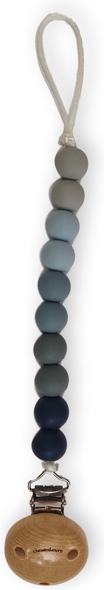 Een handig en mooi speenkoord Ombre in de kleur blue van Chewies and More. De speenkoorden zijn gemaakt van 100% food graded siliconen kralen. Ze zijn bestendig tegen beschadiging en vrij van schadelijke stoffen als ftalaten. Deze siliconen kralen zijn volledig recyclebaar wat heel fijn is voor onze omgeving. Het hout van het speenkoord is beukenhout wat van nature een uitstekende antibacteriële werking heeft.