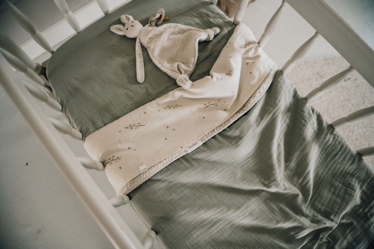 Koeka wieglaken en hoeslaken Faro Sage 80x100