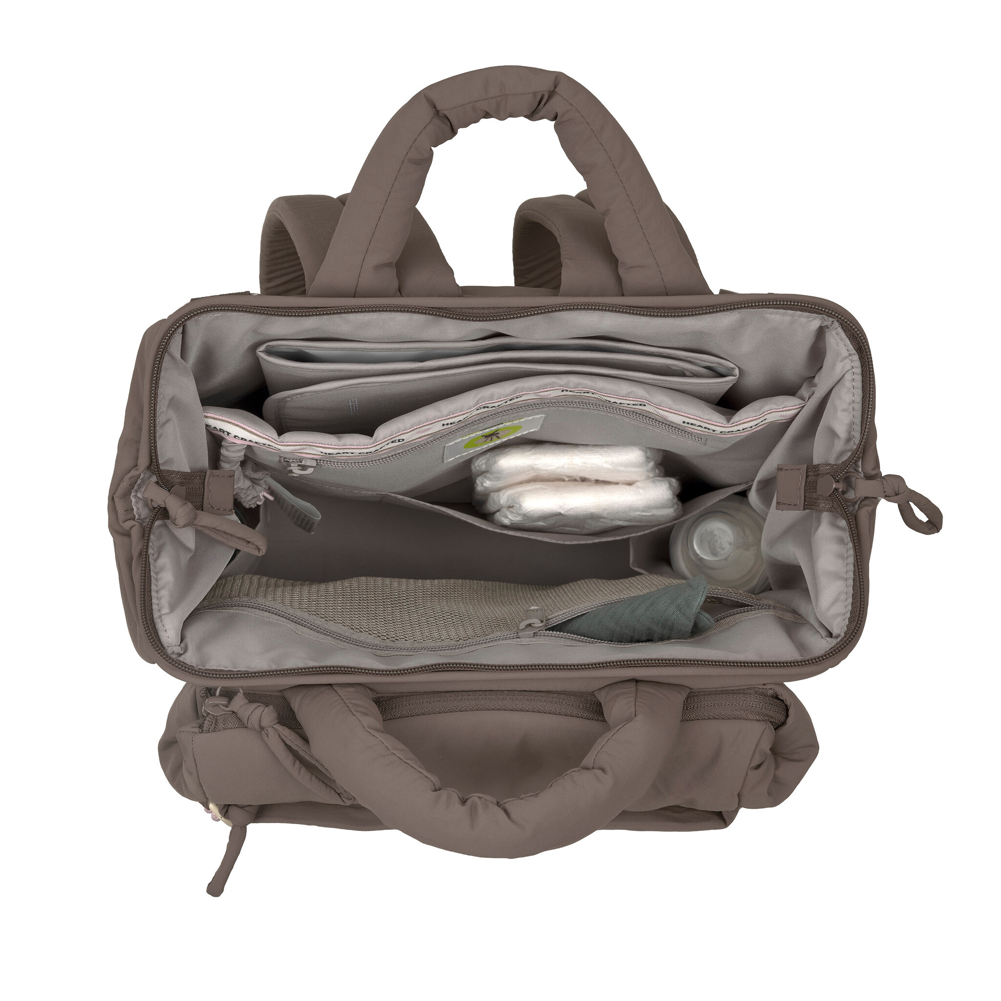 Een prachtige moderne en functionele luierrugzak Minoa in de kleur chocolate van Lässig. De tas komt uit de Green Label collectie wat inhoudt dat hij helemaal verantwoord gemaakt is. Het materiaal is volledig gerecycled. De buitenkant is gemaakt van gerecycled nylon en de binnenkant recycled polyester. De tas is voorzien van een waterafstotende coating die PFC vrij is. Het materiaal is zacht en heeft een beetje een kreukeleffect. Het ontwerp is minimalistisch stijlvol maar er is volop rekening gehouden met het feit dat je veel mee wilt nemen. De rugzak is voorzien van allerlei vakken voor bijvoorbeeld de fles, luiers en extra kleding. Aan de voorkant zit een natvak voor vieze kleding of natte zwemkleding. Ook de basisaccessoires als een verschoningsmatje en haken voor aan de wagen zitten in de rugzak. De rugzak heeft gewatteerde schouderbanden dit zorgt voor een groot draagcomfort. Aan de achterkant zit een band zodat je hem op je trolley kunt bevestigen wanneer je samen op reis gaat. De tas is makkelijk aan je wagen te bevestigen met de bijgeleverde haken.