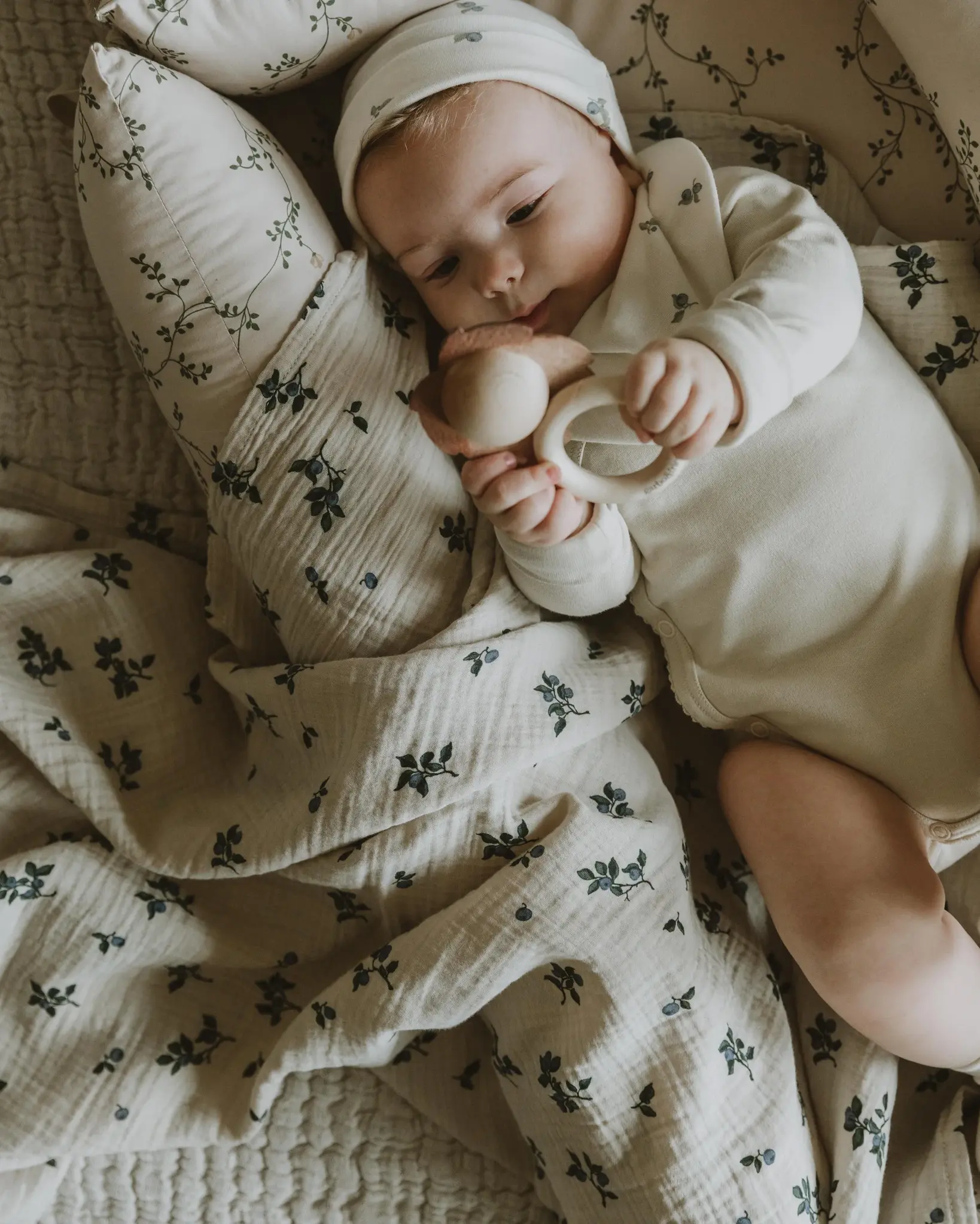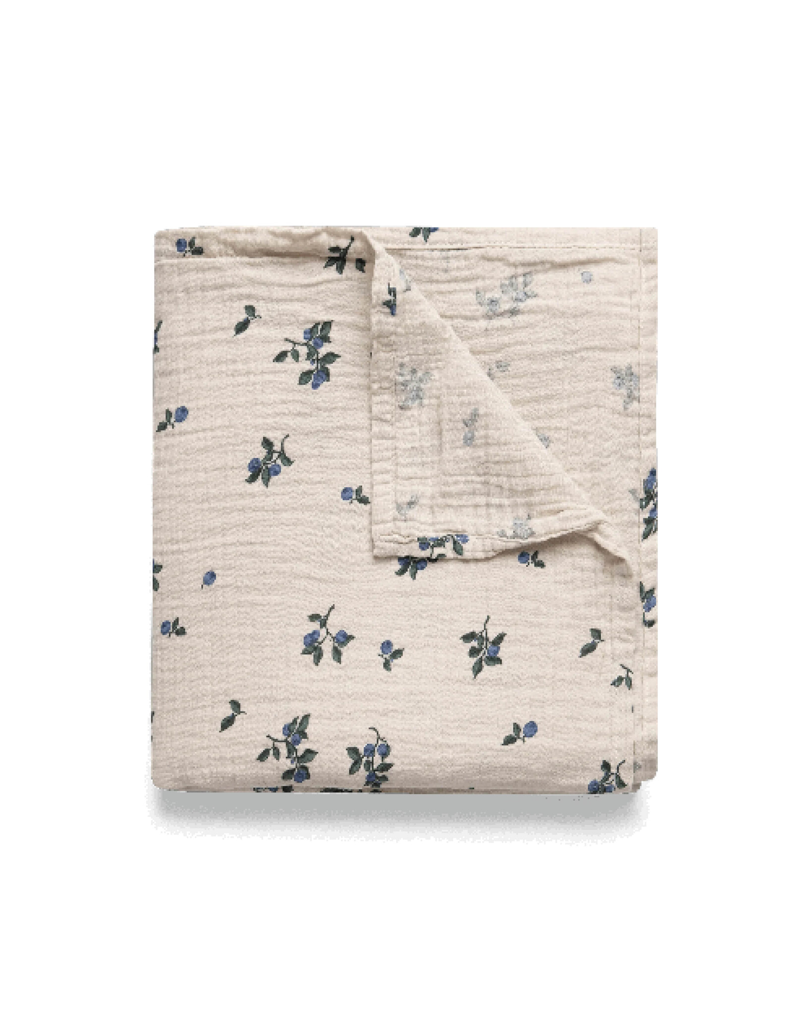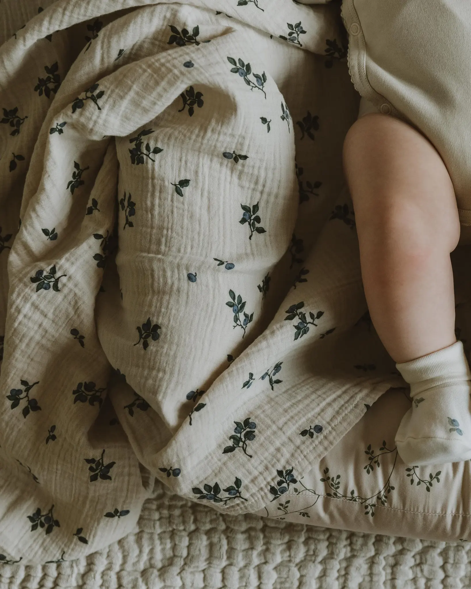 Prachtige dikke muslin swaddle big Blueberry van het mooie merk Garbo & Friends. De swaddle is gemaakt van een zachte biologische katoen en voorzien van een prachtige print. Ideaal om jouw kindje lekker in te wikkelen na het badje. Biologische katoen neemt snel vocht op en de swaddle voelt heerlijk zacht aan voor het tere babyhuidje.