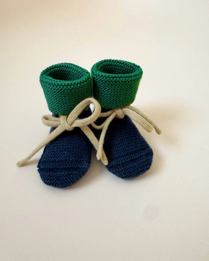 Deze booties in de kleur blue/ grass van het mooie Belgische merk Hvid houden de voetjes lekker warm. De booties zijn gemaakt van 100% extra fijne Italiaanse merino wol (Oeko-Tex en mulesing vrij). Hierdoor voelen ze extra zacht aan. De extra fijne merino wol kriebelt niet waardoor het geschikt is voor de meest gevoelige huid. Door het lintje blijven de slofjes heel goed zitten om de voetjes. Ook als het kindje veel beweegt met de beentjes. Merino wol kan in het begin pillen. Dit stopt na een tijdje vanzelf. De pluisjes zijn makkelijk te verwijderen met een machientje. Wol heeft een heleboel mooie eigenschappen. Zoals de zelfreinigende eigenschap waardoor je de slofjes bijna nooit hoeft te wassen. Vaak is het voldoende om ze even buiten te luchten. Mocht je ze toch willen wassen dan kun je dit het beste doen met de hand in lauwwarm water met een goed wolwasmiddel. Deze extra fijne merino wol jeukt niet waardoor de slofjes ook uitermate geschikt is voor kindjes met een hele gevoelige huid.