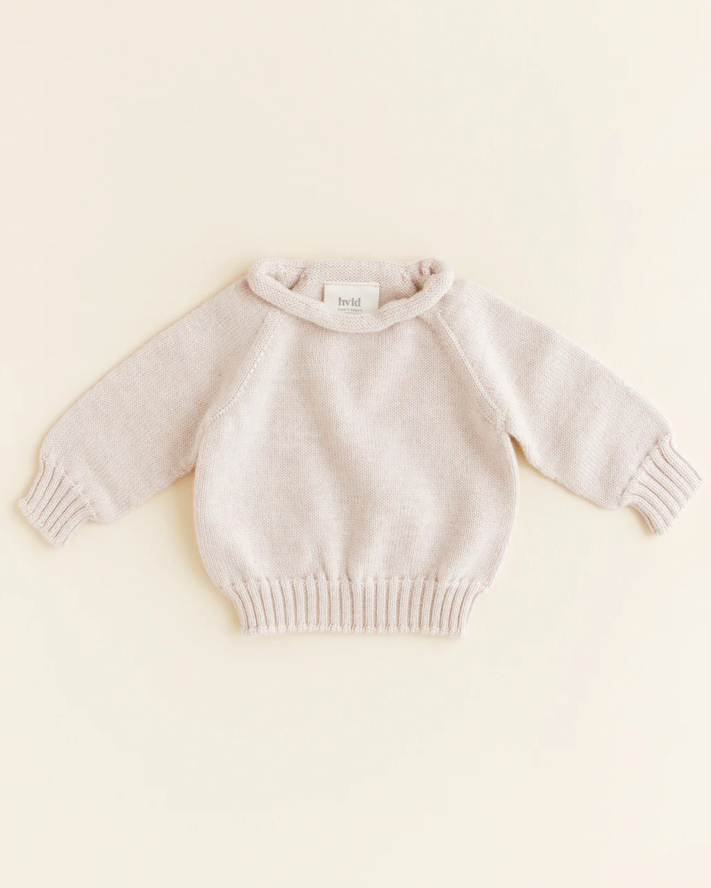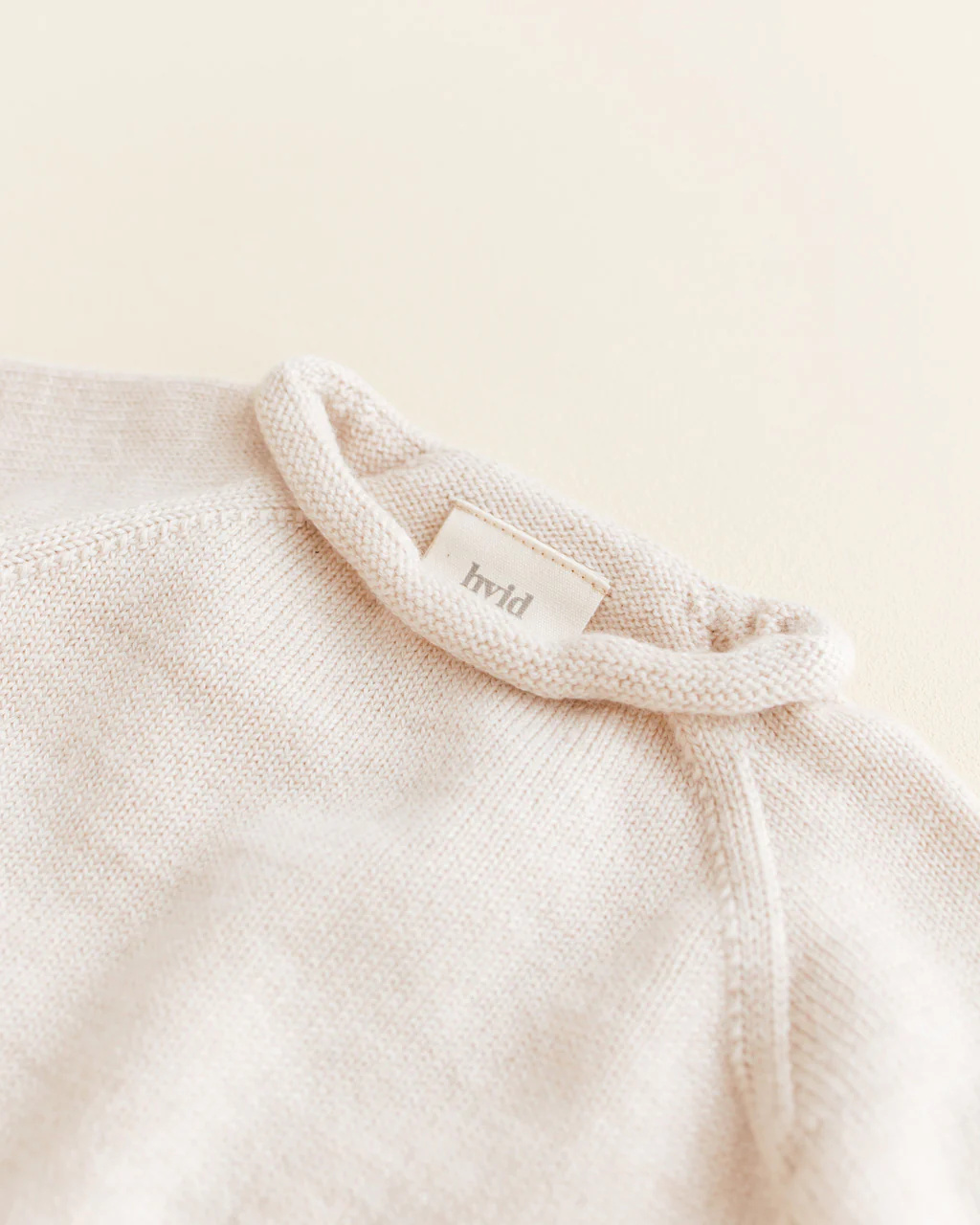 Prachtige wollen truitje Georgette in de kleur cream van het mooie Belgische merk Hvid. Het truitje is gemaakt van de zachtste Italiaanse merino wol die heerlijk warm zit. Merino wol kriebelt niet en houdt de natuurlijke warmte van jouw baby goed vast. Het truitje heeft geen naden waardoor er niets kan gaan irriteren bij jouw pasgeboren baby. Het leuke rolkraagje rekt goed mee wanneer je het truitje over het hoofdje van jouw kleintje doet.