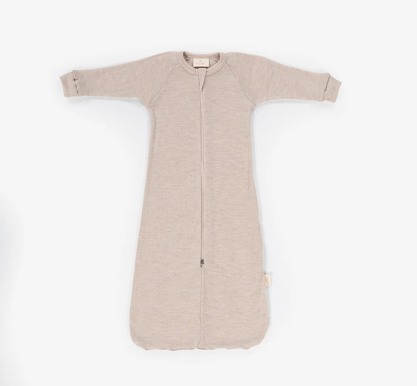 Heerlijk wollen slaapzak in de kleur beige van het mooie Nederlandse merk Kico. De slaapzak is gemaakt van gebreide merino wol. De wollen baby slaapzak is ontworpen om jouw kleintje ultiem comfort en geborgenheid te bieden tijdens het slapen. Dankzij de ademende en zachte stof voelt je baby zich heerlijk geborgen, zonder dat het te warm of te koud wordt.