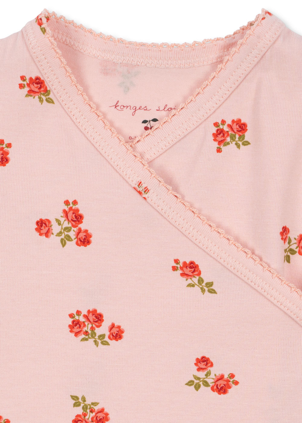 Heerlijk zacht boxpak Rosa in de kleur pink van het mooie merk Konges Sløjd. Het boxpak is gemaakt van biologische katoen met een beetje lycra waardoor hij heel comfortabel zit. Door de overslag kun je dit pak helemaal openklappen waardoor je het heel makkelijk aan kunt trekken bij jouw kleintje. De leuke print van allemaal kleine roosjes maakt hem helemaal af. De sluiting is heel mooi afgewerkt met een kantachtig werkje.