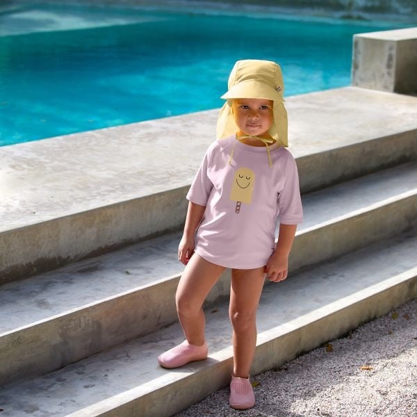 Prachtige UV werende Flap hat Pale Yellow van het duurzame merk Lassig. Deze mooie cap is niet alleen leuk vormgegeven maar ook heel praktisch. De pet heeft een UV bescherming factor 80+. De brede klep en de grote flap beschermen het gezichtje en nekje van jouw kindje tegen de zon. Met de handige touwtjes kun je het petje makkelijk bevestigen onder de kin. Ook kan het opblijven in het water aangezien het van sneldrogend materiaal is gemaakt. Lässig staat als merk voor milieuvriendelijk en recyclebare materialen.