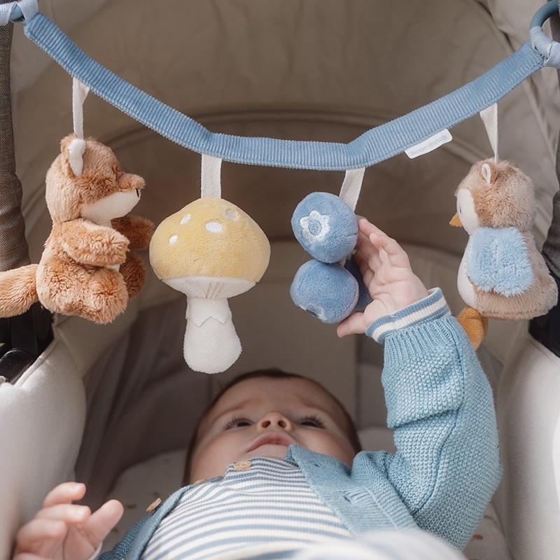 Prachtige wagenspanner uit de serie Forest Friends van het leuke Nederlandse merk Little Dutch. De wagenspanner is gemaakt van zachte velours en voorzien van allemaal leuke speeltjes. Jouw kleintje kan uren kijken en spelen met de leuke speeltjes in de vorm van een paddestoel, hertje bloem en aardbei. Geef je kindje een zintuiglijke ervaring met deze kleurrijke wagenspanner, die de ontwikkeling van de hand-oogcoördinatie stimuleert terwijl jullie onderweg zijn. Je bevestigd de wagenspanner heel makkelijk aan je wagen met de bijgevoegde ringen.