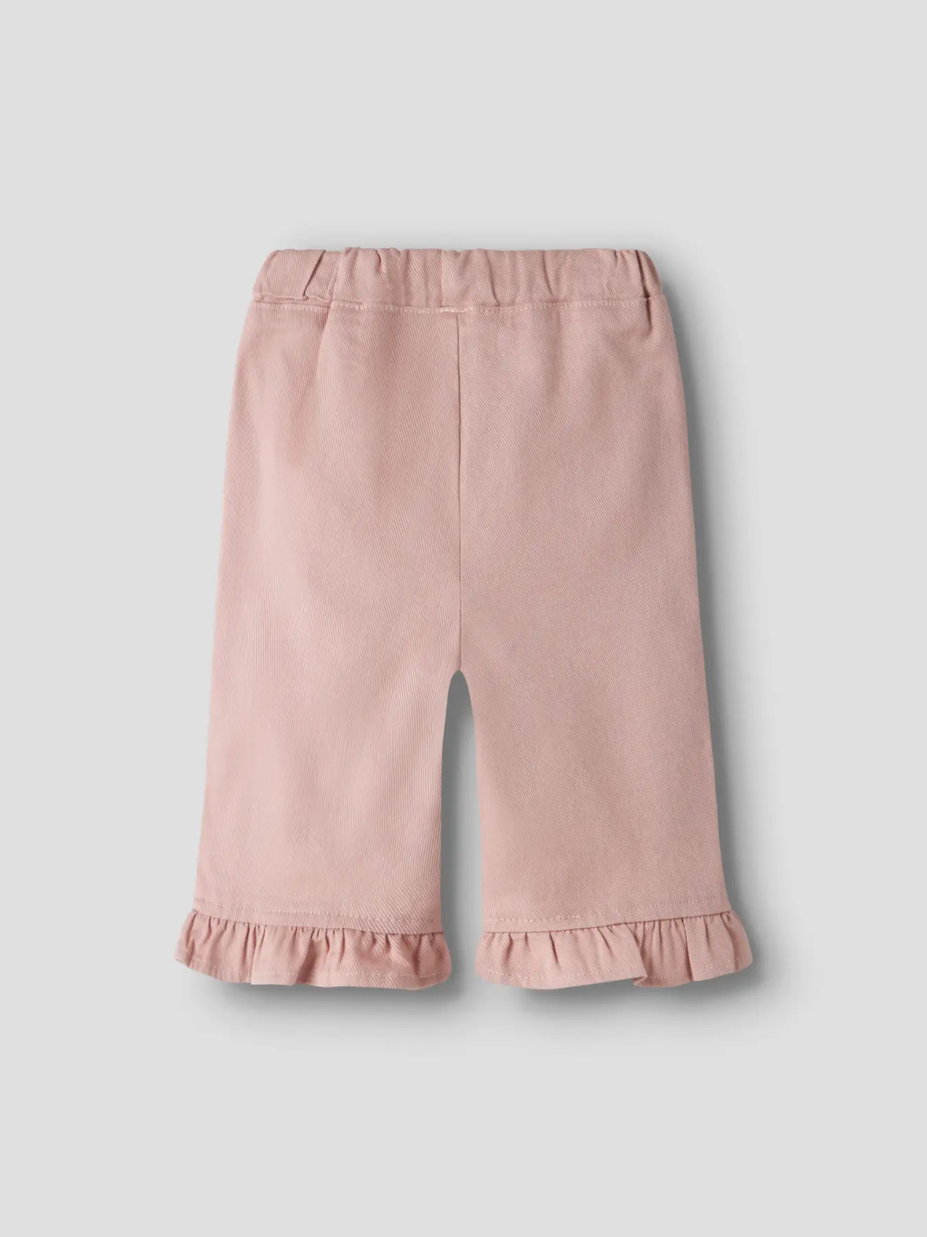 Heel leuk zomers broekje Doreen wide twill pants in de kleur Misty Rose van Lil' Atelier. Het broekje is gemaakt van een zachte biologische twill katoen met een beetje elastan. De wijde recht pasvorm doet lekker hip aan. Aan de onderkant van de pijpjes zit een leuk ruche. In de taille zit verstelbaar zacht elastiek waardoor het broekje altijd past.