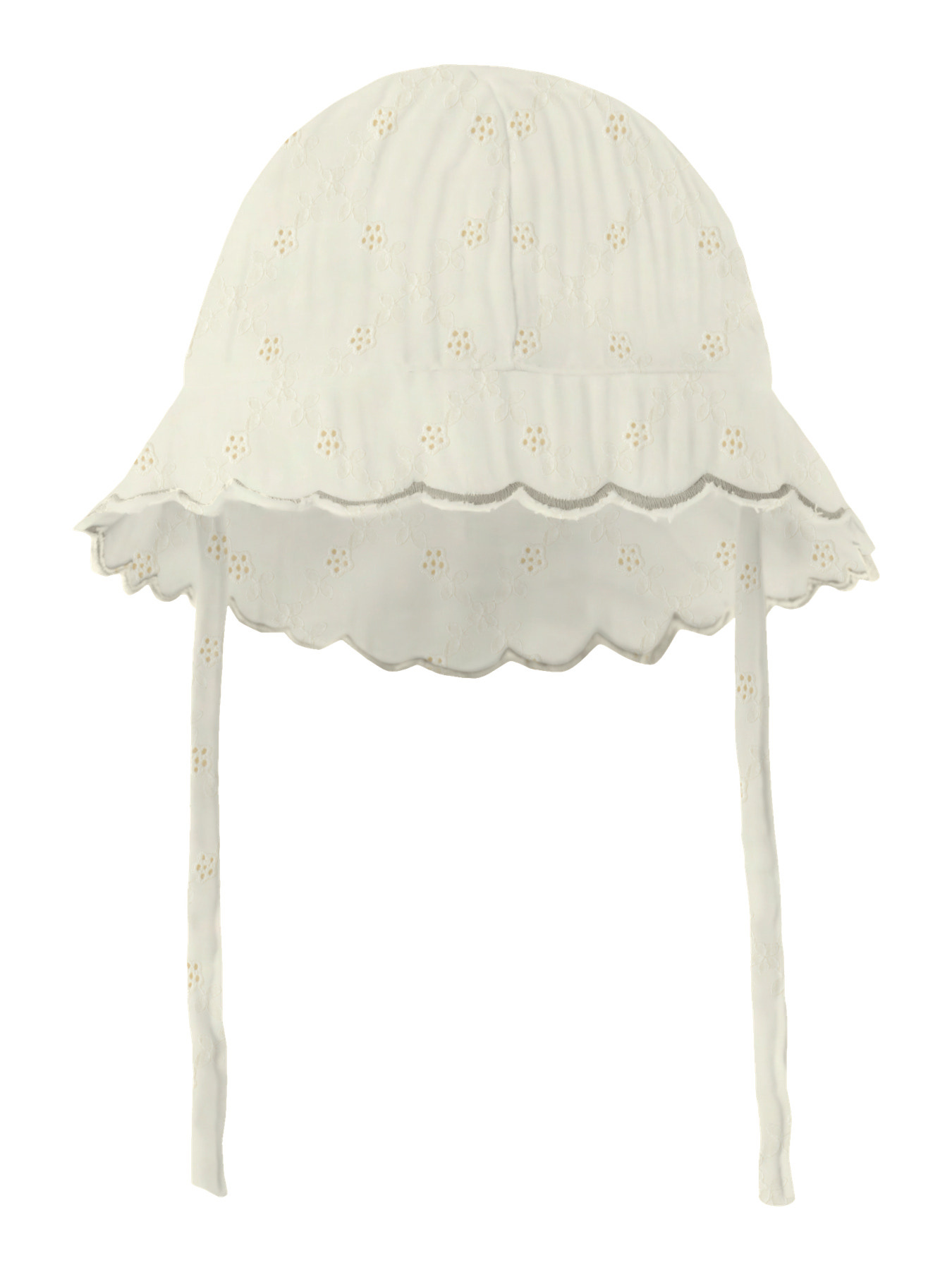 Heerlijk luchtig zonnehoedje Hosa in de kleur Coconut Milk van Lil' Atelier. Het hoedje is gemaakt van biologische katoen met een leuk broidery Anglaise werkje. Het hoedje heeft een brede flap die ervoor zorgt dat er geen zon komt op het gezichtje en nekje van jouw kindje. Door de lintjes kun je hem makkelijk onder de kin strikken. Echt een heel lief hoedje.