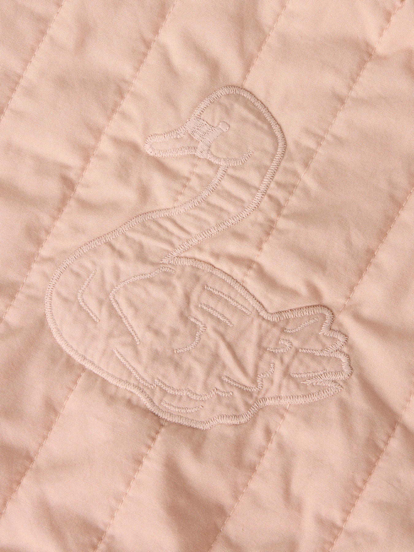 Leuke bomber Lio in de kleur Rose Swan van het merk Lil' Atelier. De bomber is gemaakt van biologische katoen en voorzien van een ECO waterafstotende behandeling. Hierdoor is de jas waterafstotend maar toch ademend. De bomber is voorzien van een verticaal stiksel en heeft een leuke applicatie aan de achterkant in de vorm van een zwaan. De jas sluit met een rits aan de voorkant en heeft elastiek aan de onderkant en bij de polsen tegen de wind. De jas is licht gevoerd waardoor hij zowel heel geschikt is in het voorjaar en najaar.
