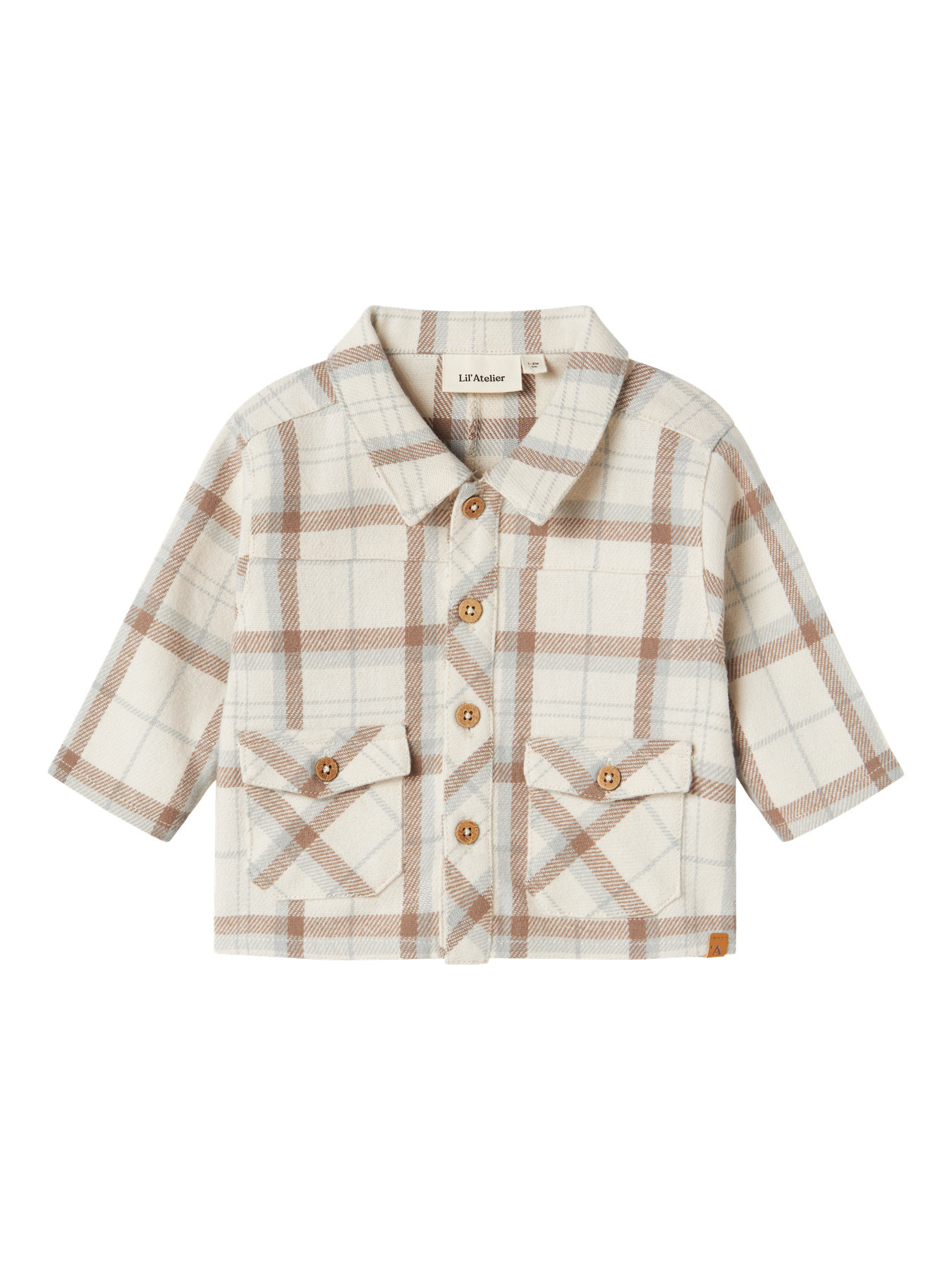 Hele stoere shirt jacket Otis in de kleur Turtledove van het leuke merk Lil' Atelier. Het overshirt is gemaakt van biologische twill katoen en voorzien van een stoere grote ruit. Het leuke aan dit overhemd is dat je hem zowel open als gesloten kunt dragen. Het shirt is mooi uitgewerkt met stoere zakken, mooie houten knopen en een leuk labeltje. Combineer dit leuke item met een van de leuke broekjes van dit mooie merk. Ook heel leuk te combineren met de Alwero wollen bodywarmer.