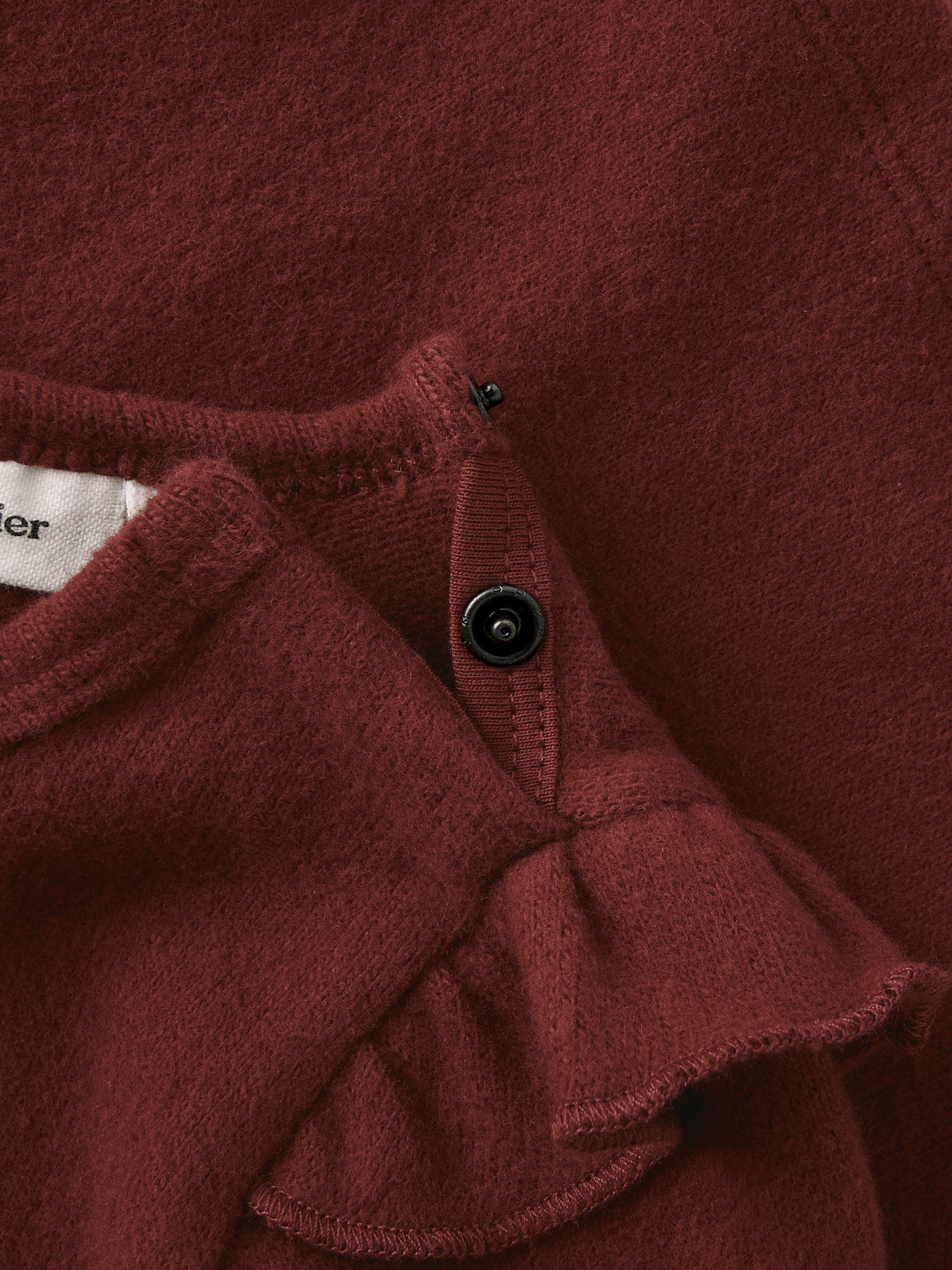 Heerlijk zachte longsleeve Thora Hyk in de kleur Hot Chocolate van het leuke merk Lil' Atelier. De top is gemaakt van een mix met biologische katoen en gebrushed waardoor hij heel zacht aanvoelt. Op de schouder zitten drukkertjes waardoor je hem makkelijk over het hoofdje kunt krijgen. De top heeft leuke ruches op de schoudernaad.