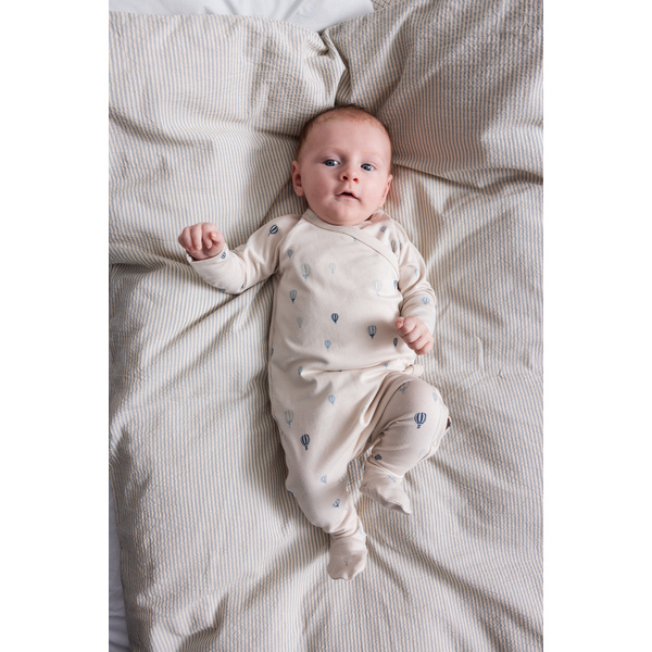 Prachtig newborn broekje Pixa in de kleur Air Baloon van het duurzame merk MarMar Copenhagen. Het broekje is gemaakt van een mix van Modal met biologische katoen waardoor het heerlijk zacht aanvoelt. De hoge band zit heerlijk zacht om het buikje van jouw pasgeboren baby. Het broekje is voorzien van een schattig printje van allemaal luchtballonnen. Door de aangebreide voetjes hoeft jouw kleintje geen sokjes aan in het begin. Combineer dit mooie broekje met de bijpassen de wikkeltop of romper tot een prachtige newbornset.