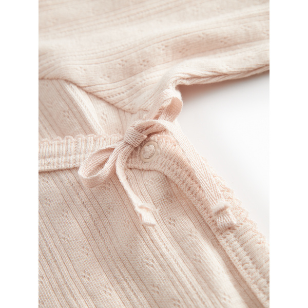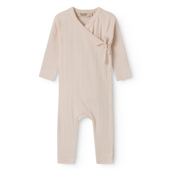 Heerlijk zacht newborn pakje Rula in de kleur Misty Pink van het duurzame merk MarMar Copenhagen. Dit mooie pakje is gemaakt van een mix van Modal met elastan waardoor het heerlijk zacht aanvoelt. Door de handige wikkelsliuiting hoef je het pakje niet over het hoofdje van jouw pasgeboren baby aan te doen. Combineer het met het bijpassende mutsje.