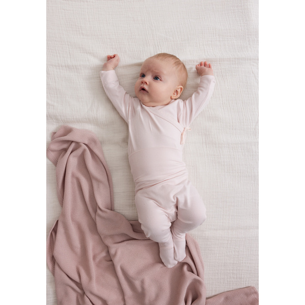 Heerlijk zacht newborn wikkeltruitje Tut in de kleur Rosa van het duurzame merk MarMar Copenhagen. Dit mooie truitje is gemaakt van Modal met biologische katoen waardoor het heerlijk zacht aanvoelt. Door de handige wikkelsluiting hoef je het truitje niet over het hoofdje van jouw pasgeboren baby te doen. Het vestje is mooi te combineren met het bijpassende broekje en mutsje tot een mooie newborn set.