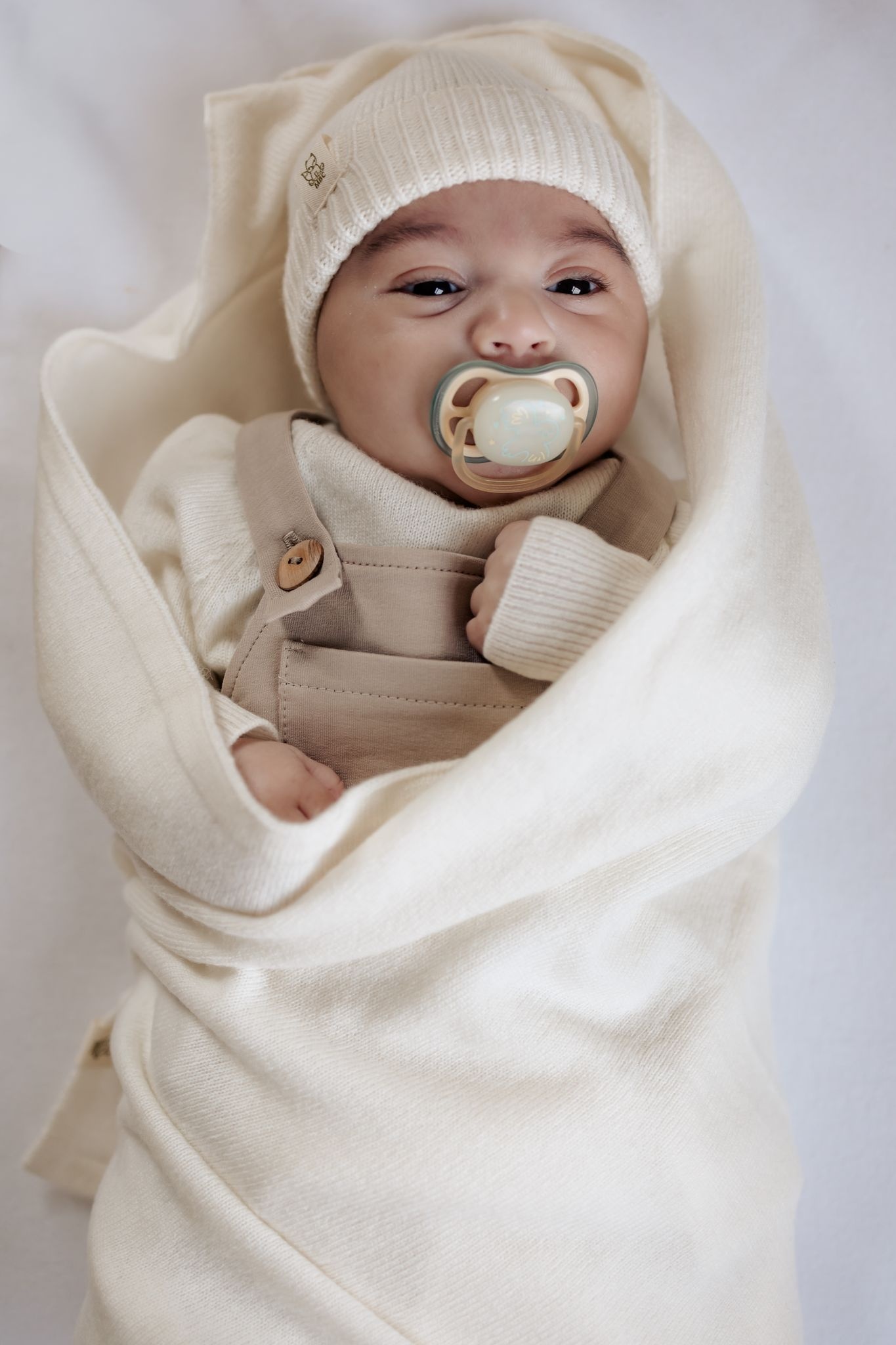 Heerlijk zacht wollen mutsje in de kleur ecru van het mooie Nederlandse merk Moalie. Het mutsje is gemaakt van merinowol waardoor het heel zacht aanvoelt. Het zachte ribboord sluit mooi aan om het hoofdje van jouw kleintje. Wol reguleert de temperatuur van jouw kleintje op een natuurlijke manier. Hierdoor is een wollen mutsje echt een must have voor iedere baby-uitzet.