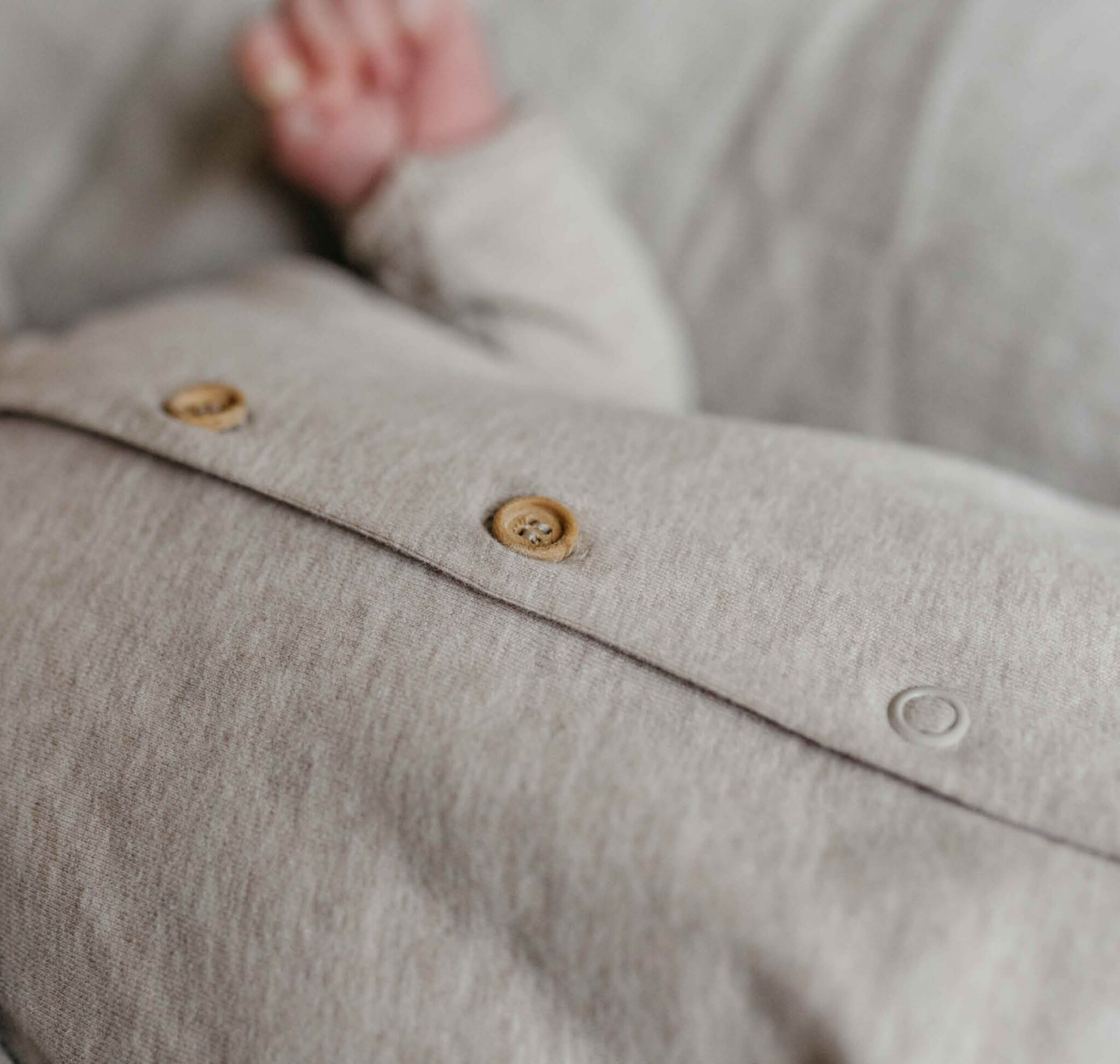 Heerlijke zachte newborn onsie Butt in de kleur pebble van het mooie Nederlandse merk Nixnut. De onesie is gemaakt van zachte biologische katoen met een beetje elastane waardoor het heerlijk zit. Een onesie mag niet ontbreken aan de uitzet van jouw baby. Het is een echte must-have voor na de geboorte. Makkelijk aan te doen en je bent in een keer klaar. Tussen de beentjes zitten drukkertjes voor het verschonen. De onesie is prachtig uitgewerkt met mooie knoopjes, een labeltje en leuke kniestukjes.