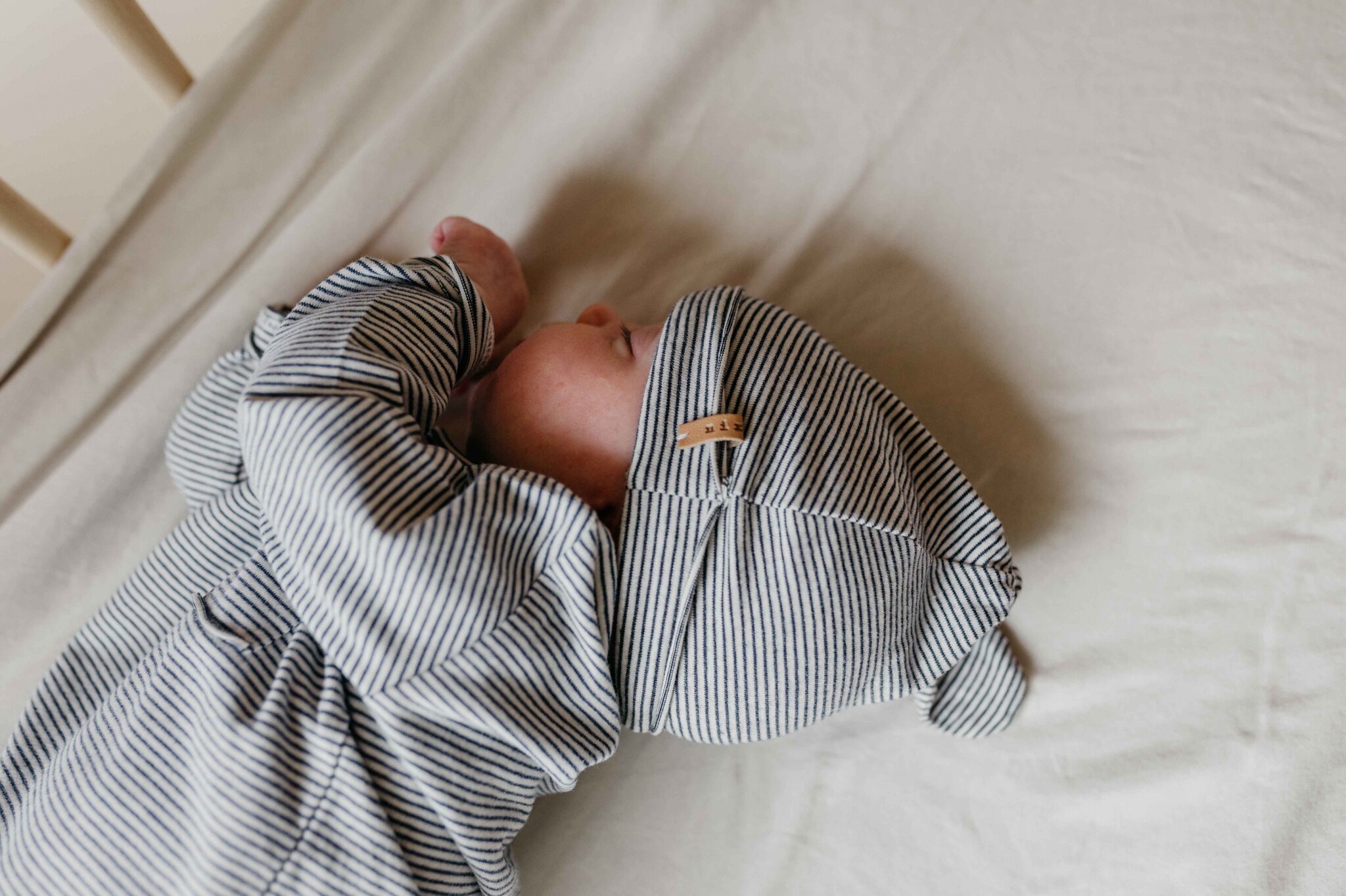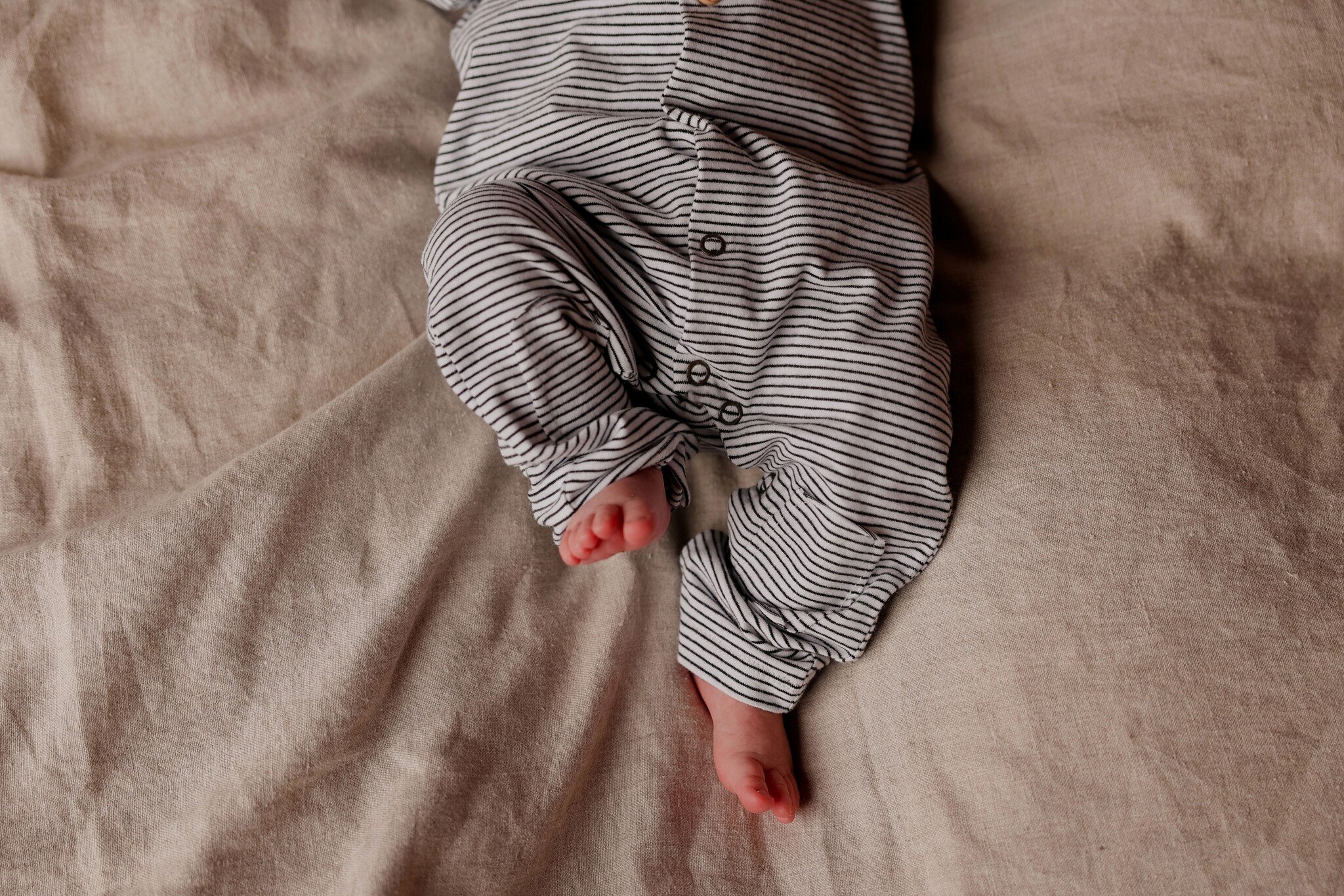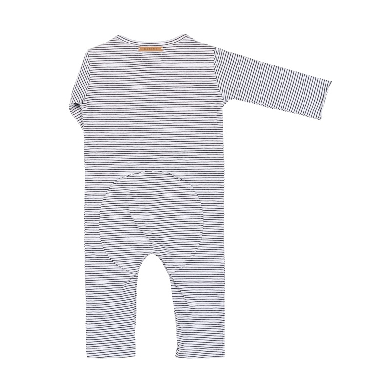 Heerlijke zachte newborn onsie Butt in de kleur storm stripe van het mooie Nederlandse merk Nixnut. De onesie is gemaakt van zachte biologische katoen met een beetje elastane waardoor het heerlijk zit. Een onesie mag niet ontbreken aan de uitzet van jouw baby. Het is een echte must-have voor na de geboorte. Makkelijk aan te doen en je bent in een keer klaar. Tussen de beentjes zitten drukkertjes voor het verschonen. De onesie is prachtig uitgewerkt met mooie knoopjes, een labeltje en leuke kniestukjes.