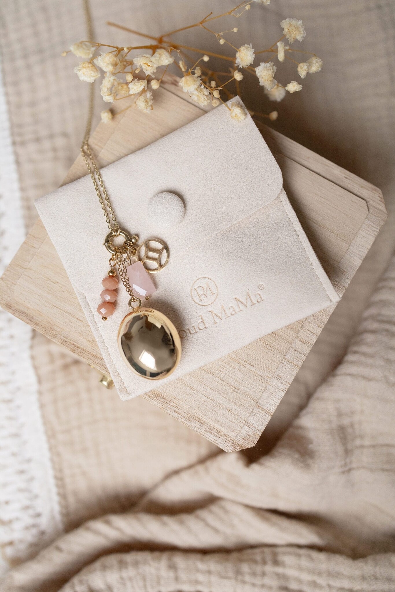 Linn rose quartz-Bola pregnancy necklace