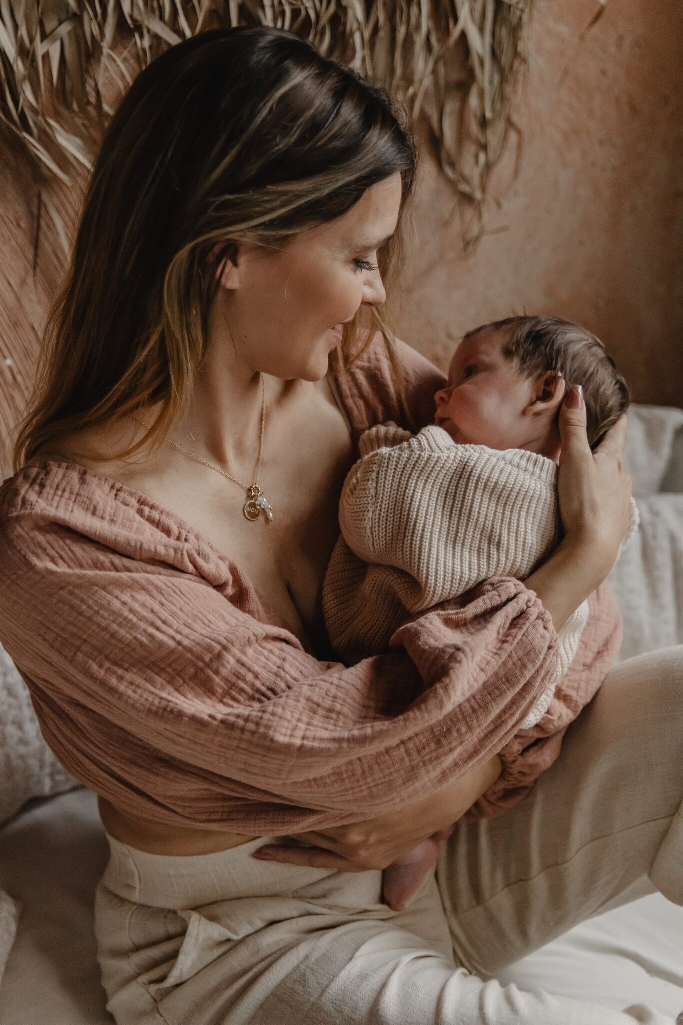 Linn rose quartz-Bola pregnancy necklace