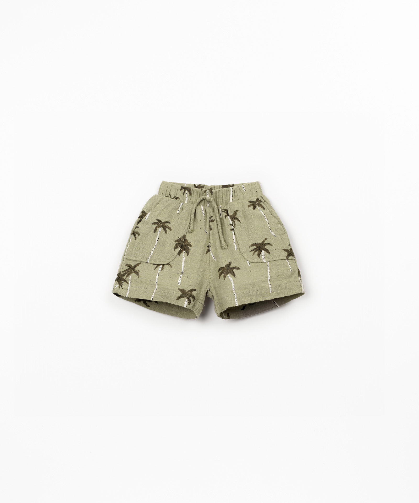 Leuk zomers shortje met de print Textrure van het duurzame merk Play Up. Het shortje is gemaakt van biologische katoen met een linnenachtige structuur. In de taille zit zacht elastiek met een koordje waardoor je het shortje makkelijk qua omvang kunt aanpassen. De leuke print van allemaal palmbomen doet lekker zomers aan. Combineer dit leuke item met een van de tops.