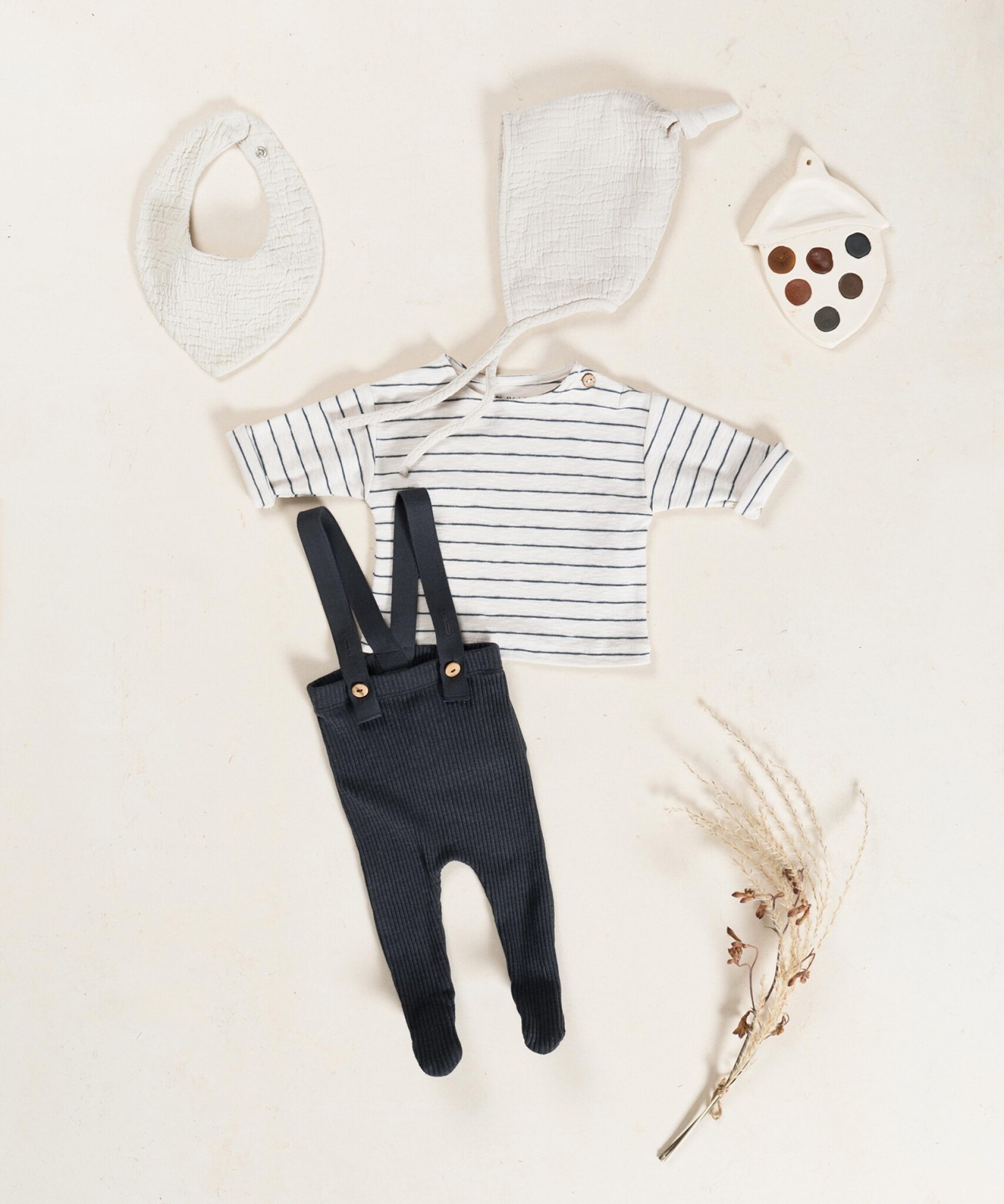 Hele leuke longsleeve Stripe Graphite van het mooie Portugese merk Play Up. De longsleeve is gemaakt van zachte biologische katoen en voorzien van een leuk fijn streepje in een donkergrijze kleur. Op de schouder zitten knoopjes gemaakt van kokosnoot. Dit shirtje is heel leuk te combineren met een van de mooie leggins van dit leuke merk.
