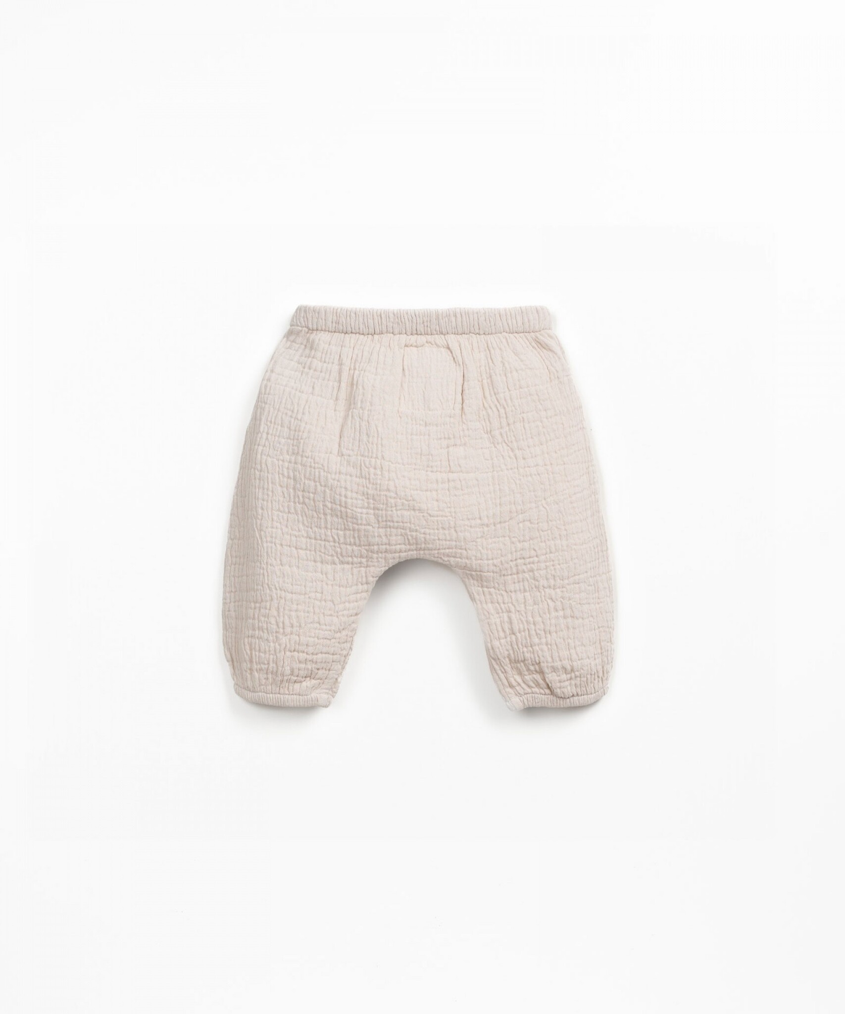 Prachtig zacht broekje in de kleur Tones van het mooie Portugese merk Play Up. Het broekje is gemaakt van een zachte hydrofiel katoen waardoor hij heerlijk zit. In de taille zit zacht elastiek met een mooi knoopje van kokosnoot.