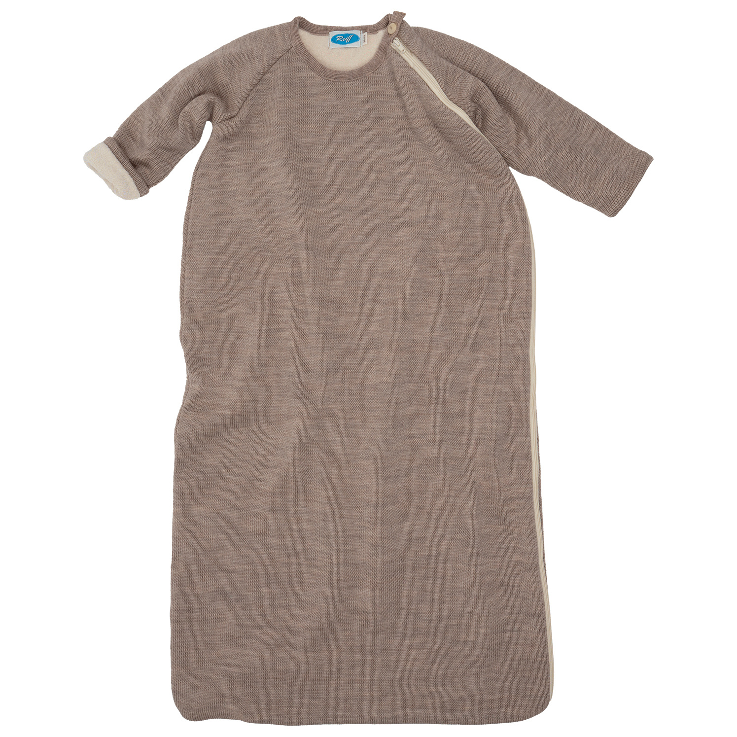 Een heerlijke zachte wollen slaapzak met lange mouwen in de kleur zand van het Duitse merk Reiff. De slaapzak is gemaakt van biologische wol die op een diervriendelijke manier verkregen is. De slaapzak bestaat uit twee lagen. Aan de buitenkant een gebreide laag van zachte merino wol met aan de binnenkant zachte biologische teddy. Door de dubbele laag is deze slaapzak geschikt voor een kamertemperatuur onder de 18 graden (3,5 tog). Door de lange rits kun je hem makkelijk openklappen en aandoen bij jouw kleintje.