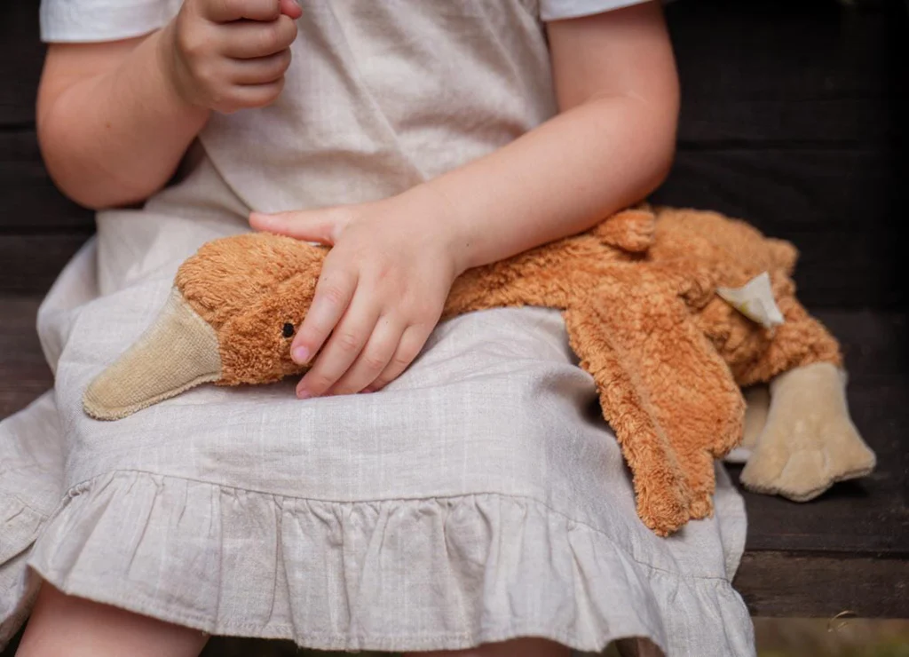 Deze prachtige en zachte knuffelgans in de kleur rust van het duurzame Duitse merk Senger Naturwelt is een echte grote vriend voor jouw kleintje. De gans is gemaakt van zachte biologische katoen en gevuld met biologische wol. In de gans zit een klein zakje gevuld met kersenpitten afkomstig uit de Schwäbische Alb. Hierdoor is de knuffel ook geschikt als warmte kussen voor koude nachten of bij buikkrampjes.
