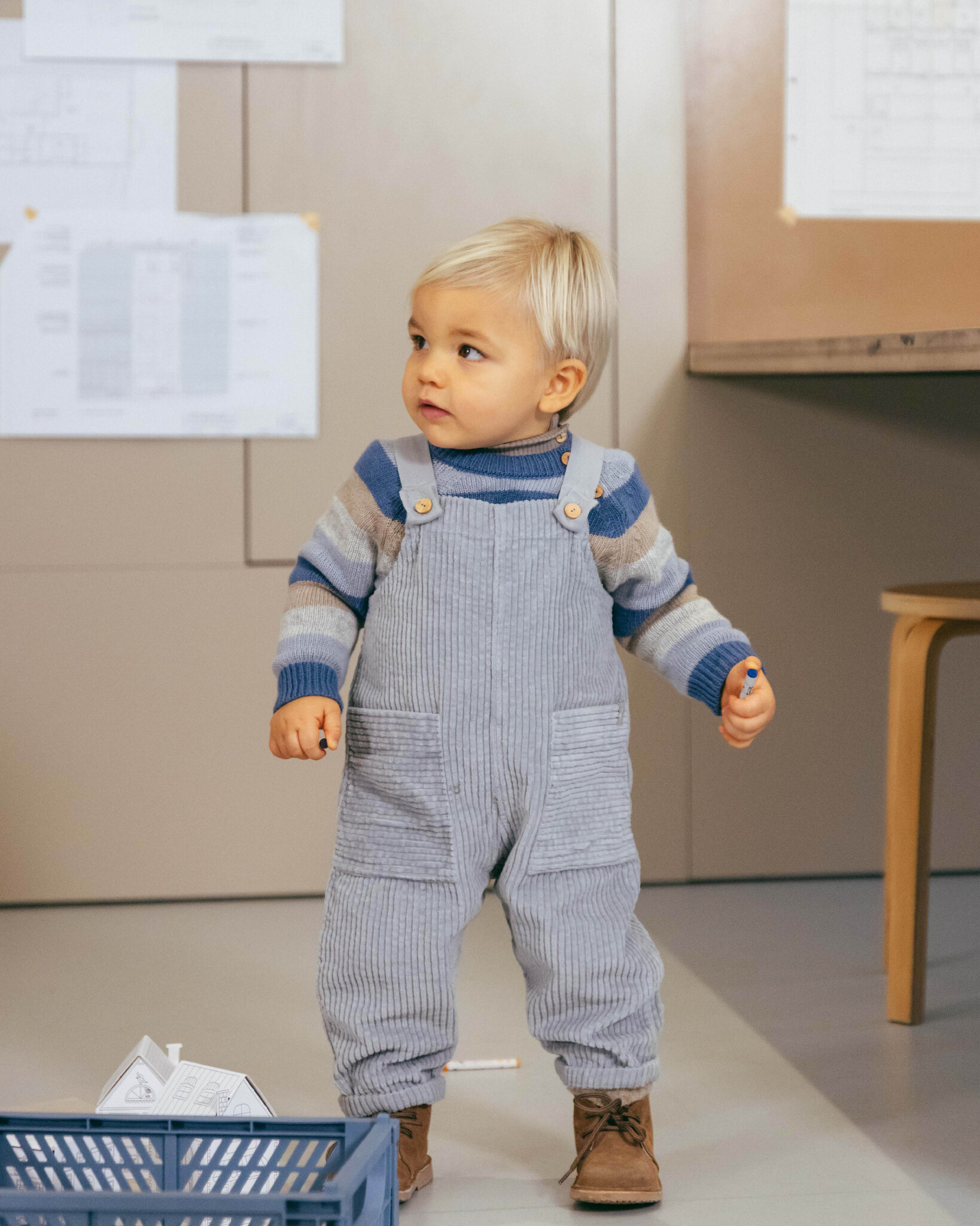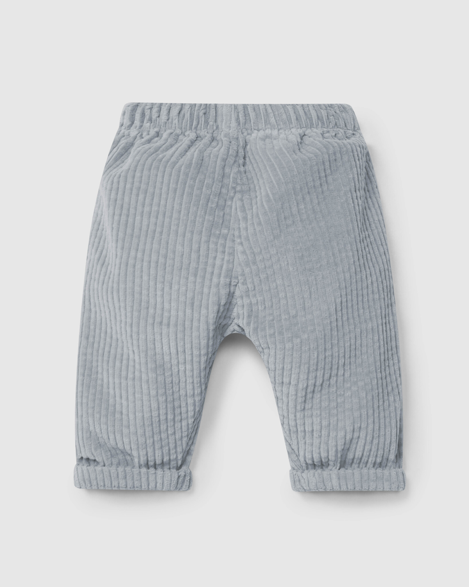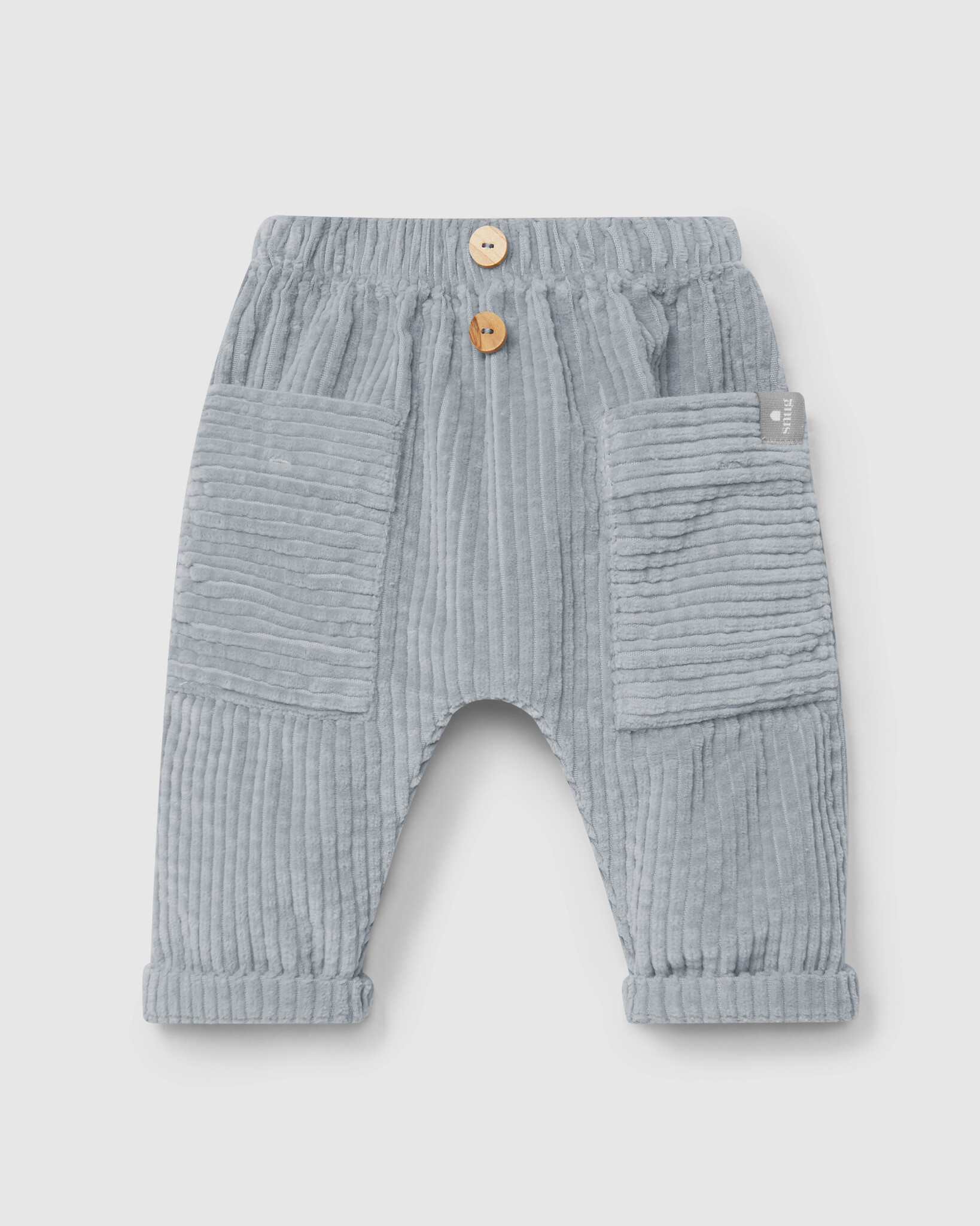 Heerlijke winterse rib broek in de kleur Blue Grey van het Portugese merk Snug. De broek is gemaakt van biologische soepele rib jersey waardoor hij heerlijk zit. De dikke rib geeft hem een extra stoere uitstraling. De broek is mooie uitgewerkt met leuke opgestikte zakken, een omslag, houten knoopjes en zacht elastiek in de taille. Combineer deze leuke broek met een fijne sweater of trui.