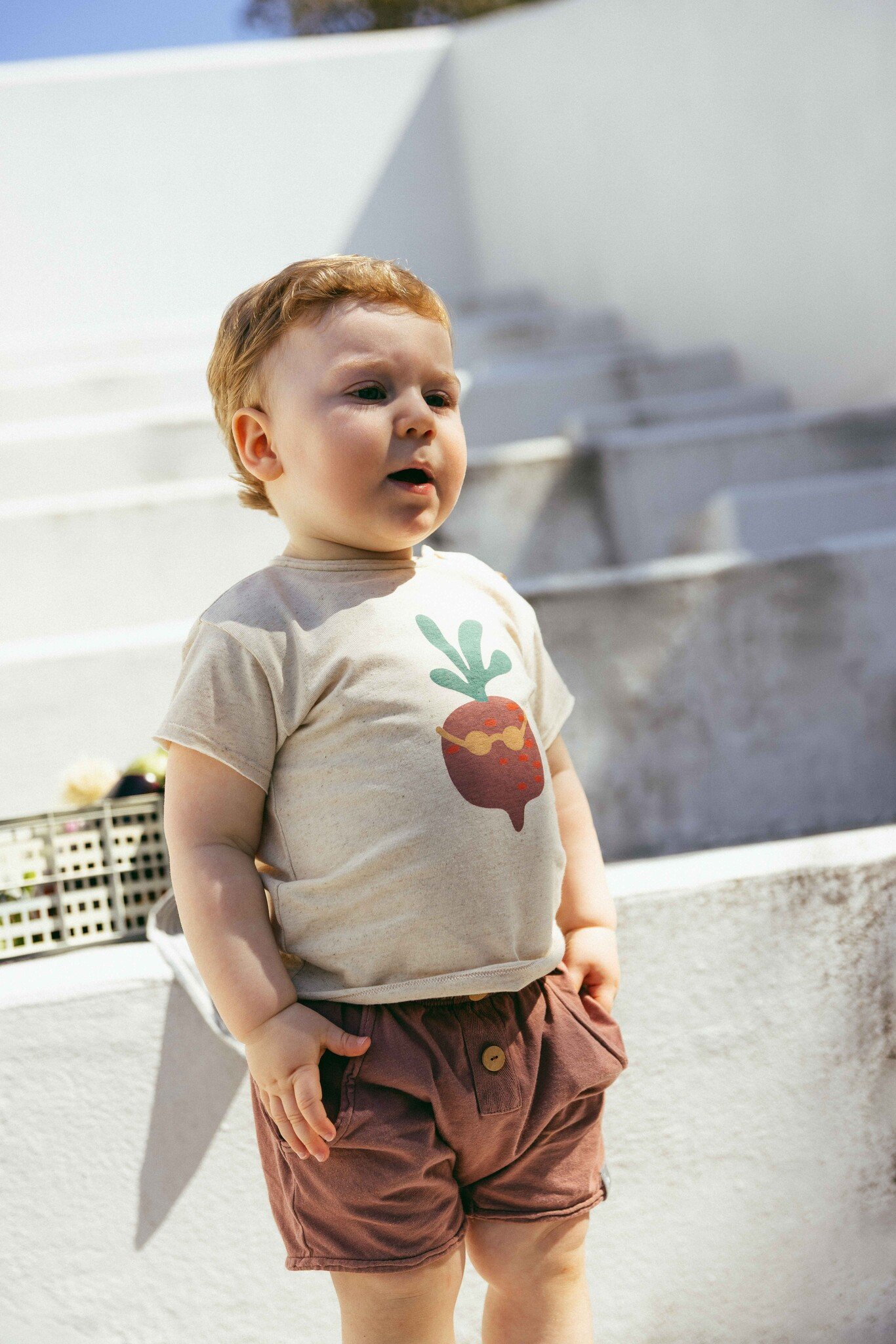 Heel grappig T-shirtje Pineapple van het leuke Portugese merk Snug. Het shirtje is gemaakt van biologische katoen melange en voorzien van een grappige print in de vorm van een aubergine. Het shirtje heeft houten knoopjes op de schouder zodat je het makkelijk over het hoofdje van jouw kindje kunt krijgen. Combineer dit zomerse item met een van de leuke shortjes.