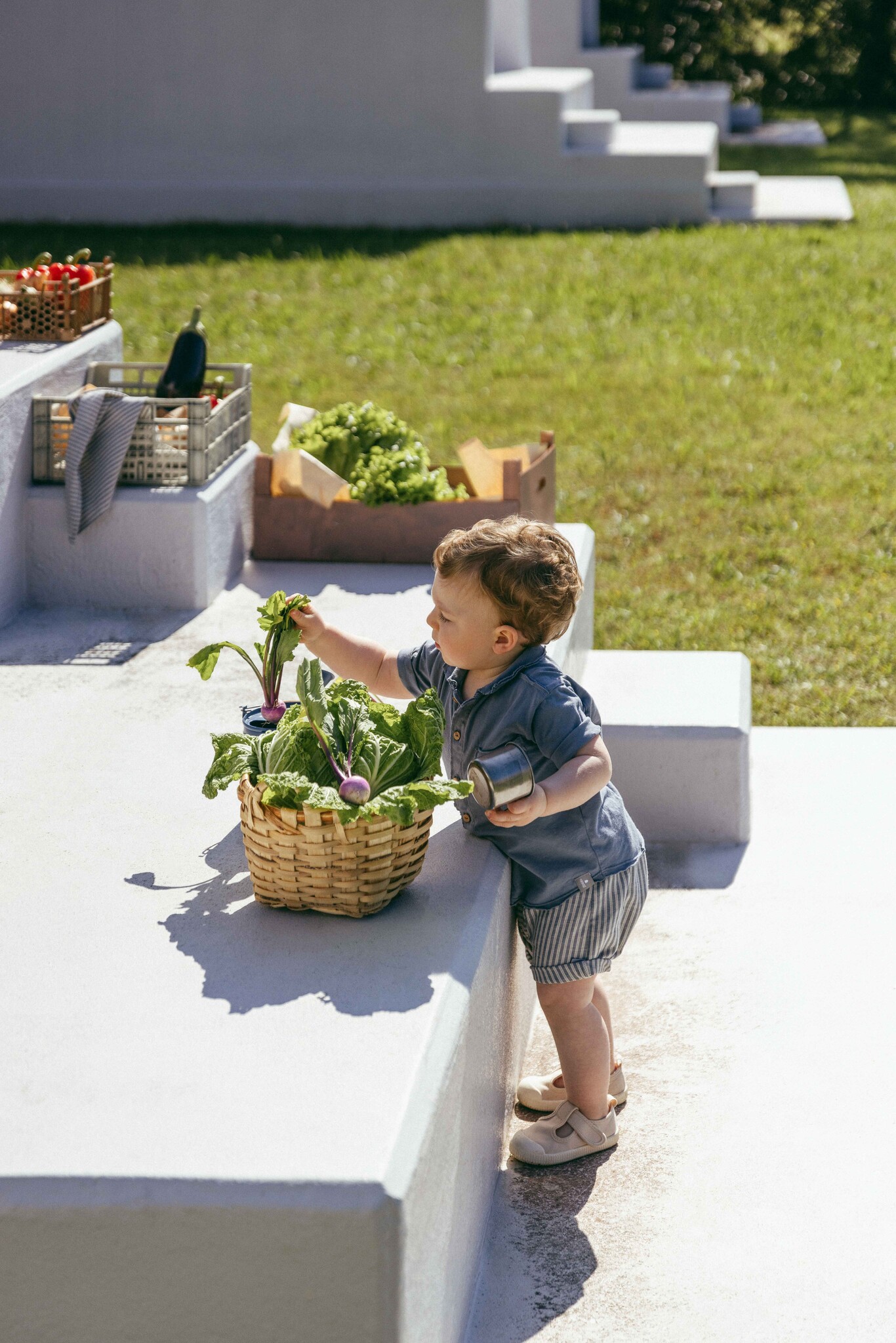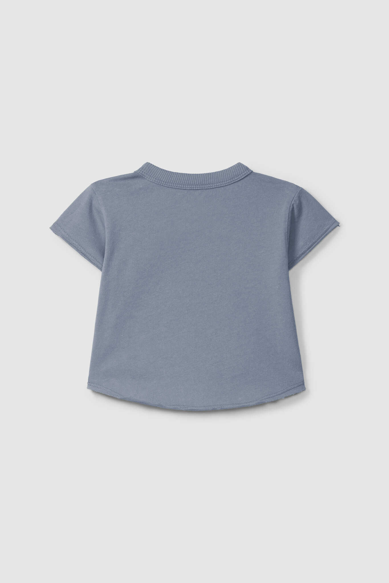 Mooi zacht T-shirtje met korte mouw in de kleur Indigo van het Portugese merk Snug. Het T-shirtje is gemaakt van biologische katoen en voorzien van een leuk zakje. Op de schouder zitten mooie houten knoopjes waardoor je het shirtje makkelijk over het hoofdje van jouw kindje kunt krijgen. Combineer dit mooie basis shirtje met een van de leuke shortjes.