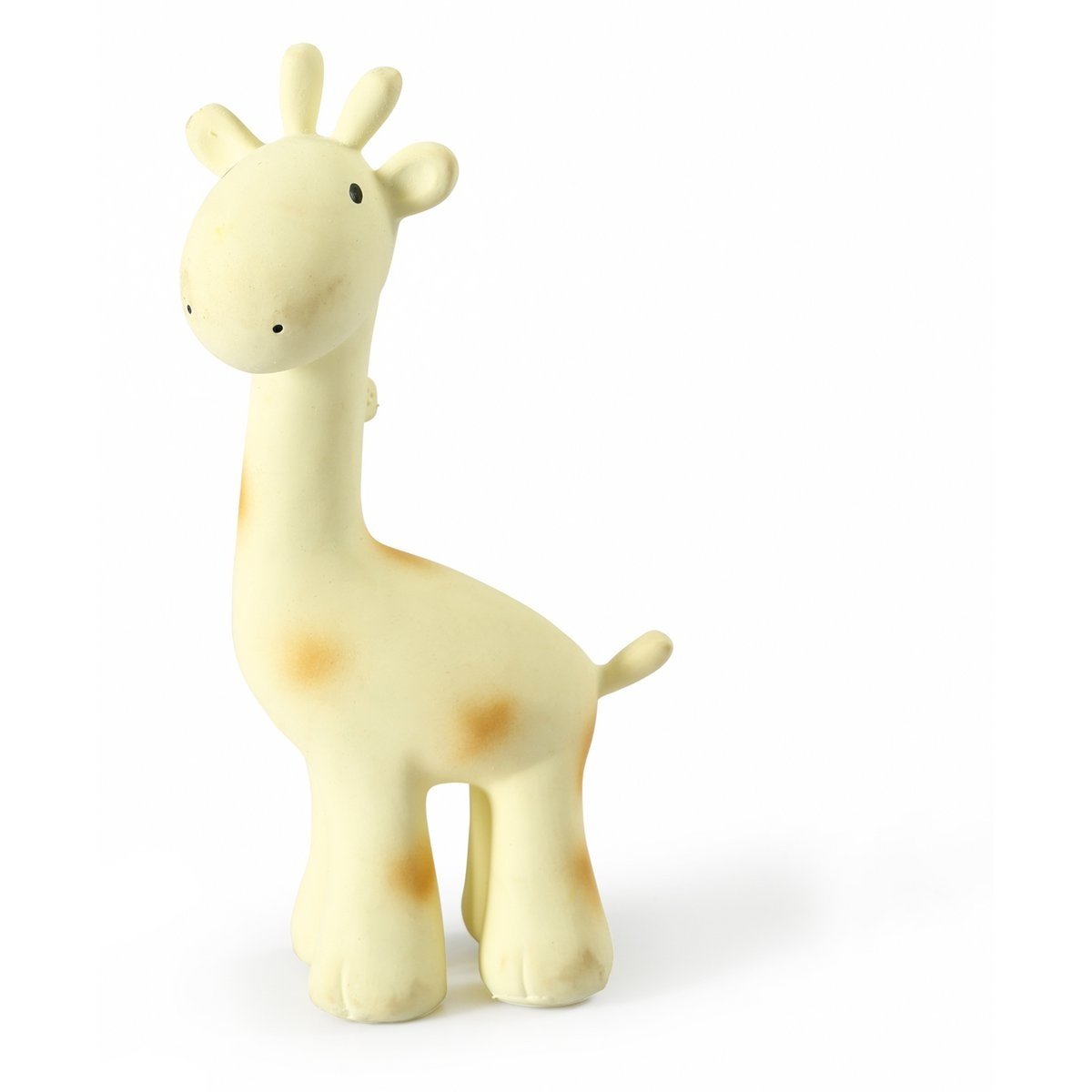 Heel mooi bijtspeeltje in de vorm van een giraf van het leuke merk Tikiri. Het bijtspeelgoed is gemaakt van 100% natuurlijk rubber uit de latex van de Hevea-boom. De kleurstoffen zijn volledig natuurlijk en vrij van schadelijke stoffen. De producten worden met de hand gemaakt op een mileuvriendelijke en duurzame manier. De bijtspeeltjes van Tikiri stimuleren de zintuigen van baby’s van 0 tot 3 jaar. Daarnaast bieden ze troost aan kindjes bij doorkomende tandjes.