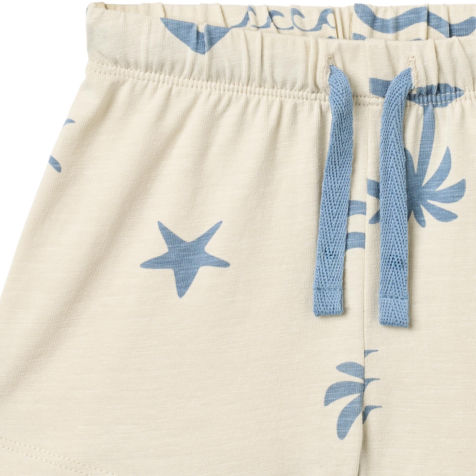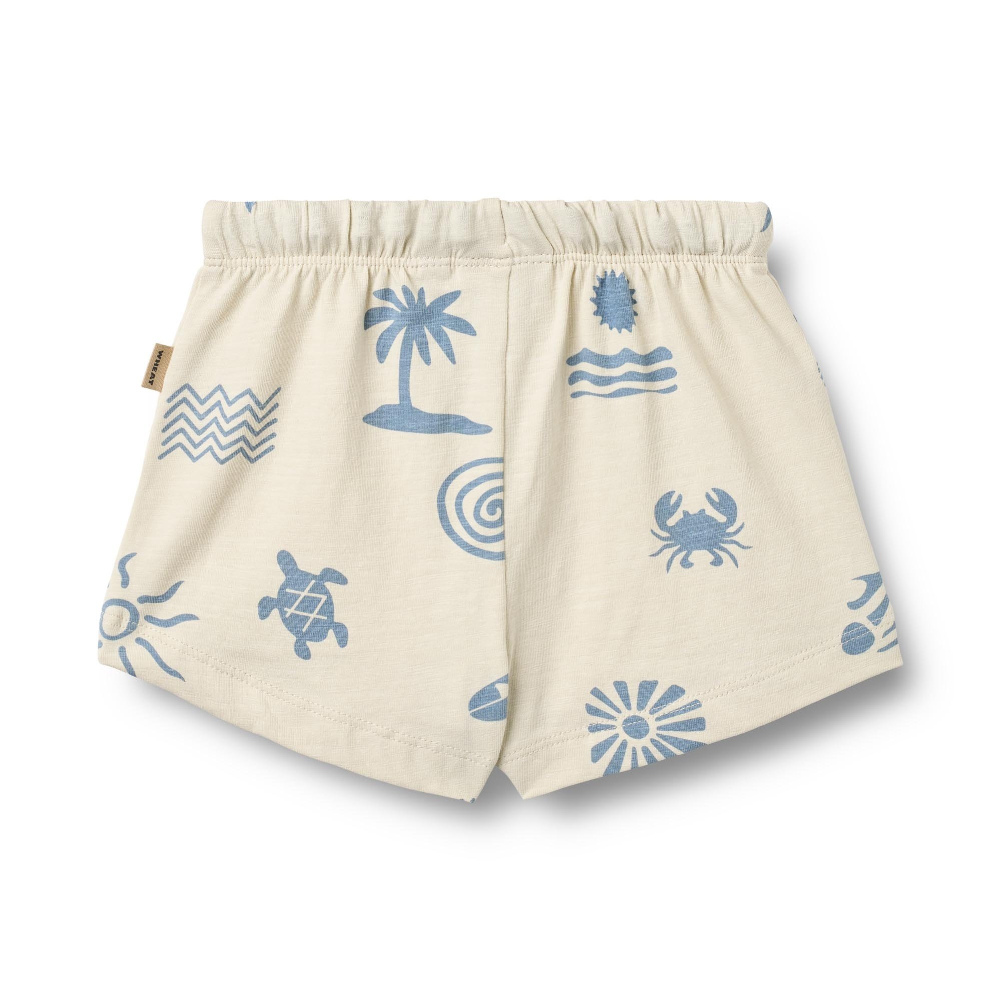 Leuk zomers shortje Vic met de print Summer island van het Deense merk Wheat. Het shortje is gemaakt van zachte biologische katoen sweat waardoor het heerlijk zit. In de taille zitten zacht elastiek en een lintje. Het shortje wordt extra zomers door de leuke grafische print.