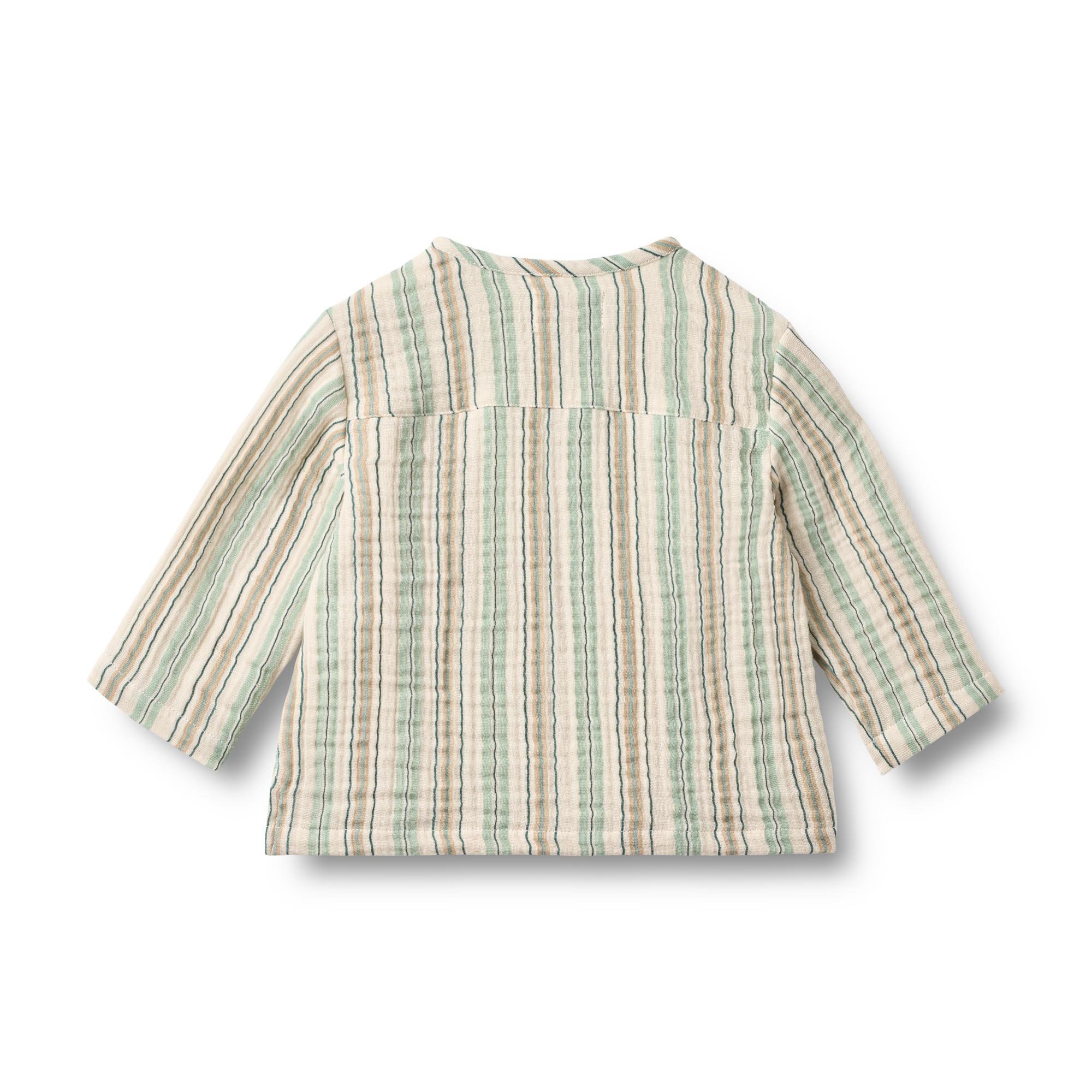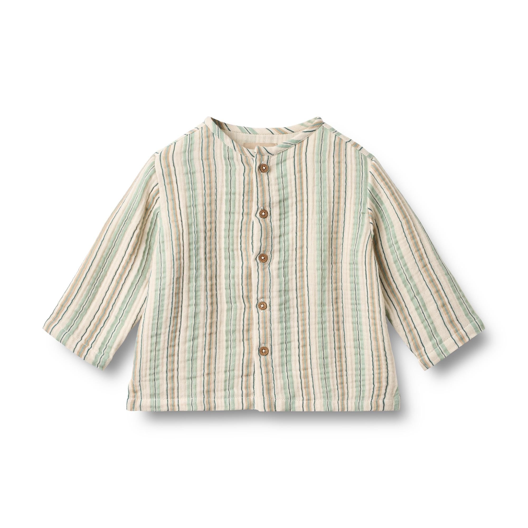 Heerlijk luchtig shirt Shelby in de kleur Summer stripe van het Deense merk Wheat. Dit leuke bloesje is gemaakt van biologische muslin katoen en voorzien van een leuke streep. Het bloesje sluit aan de voorkant met houten knoopjes.